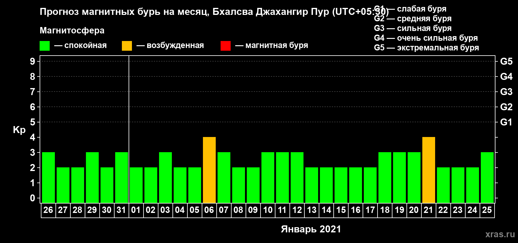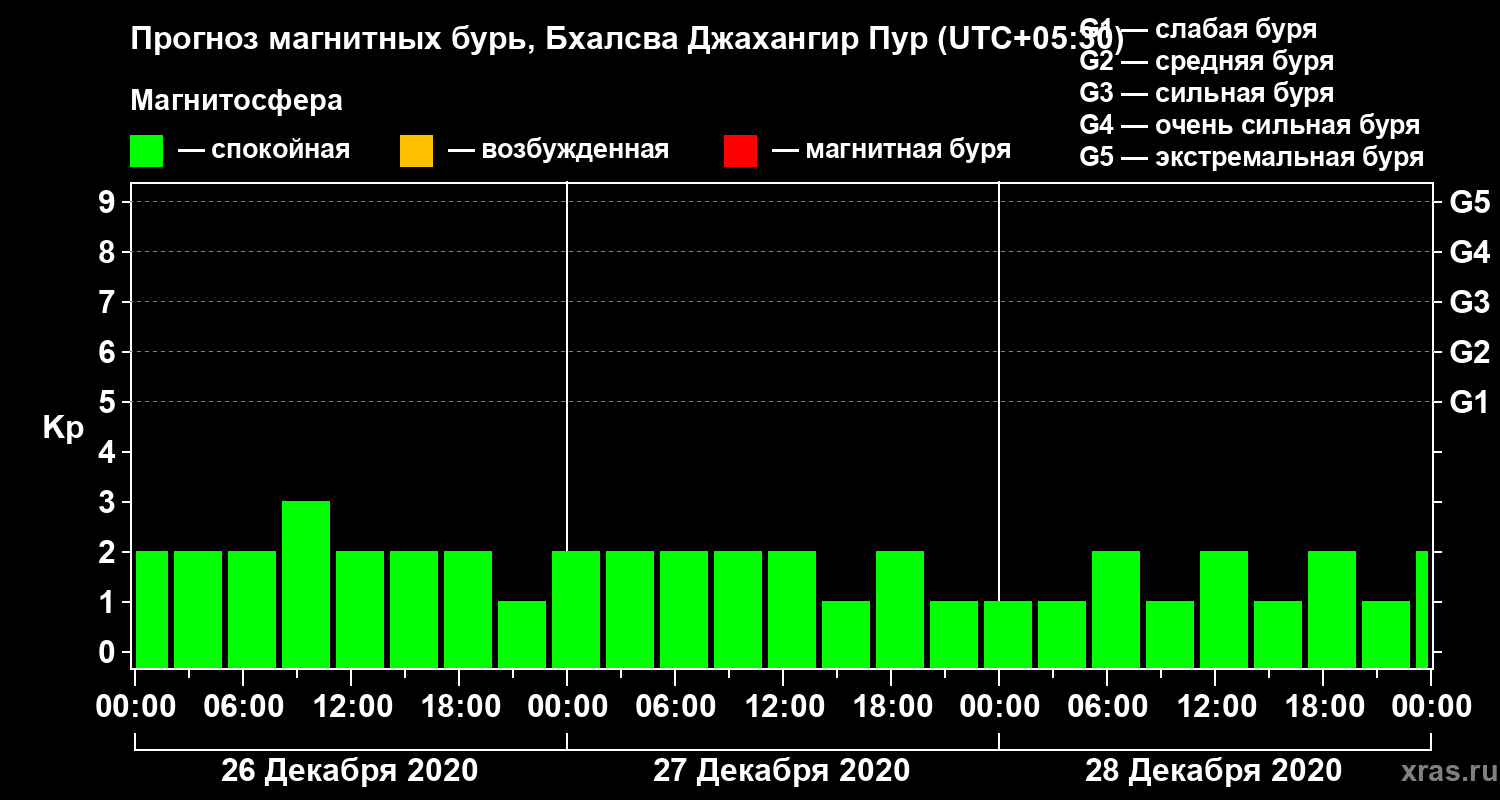 Прогноз магнитных бурь в Бхалсва Джахангир Пуре — 26 декабря 2020 года
