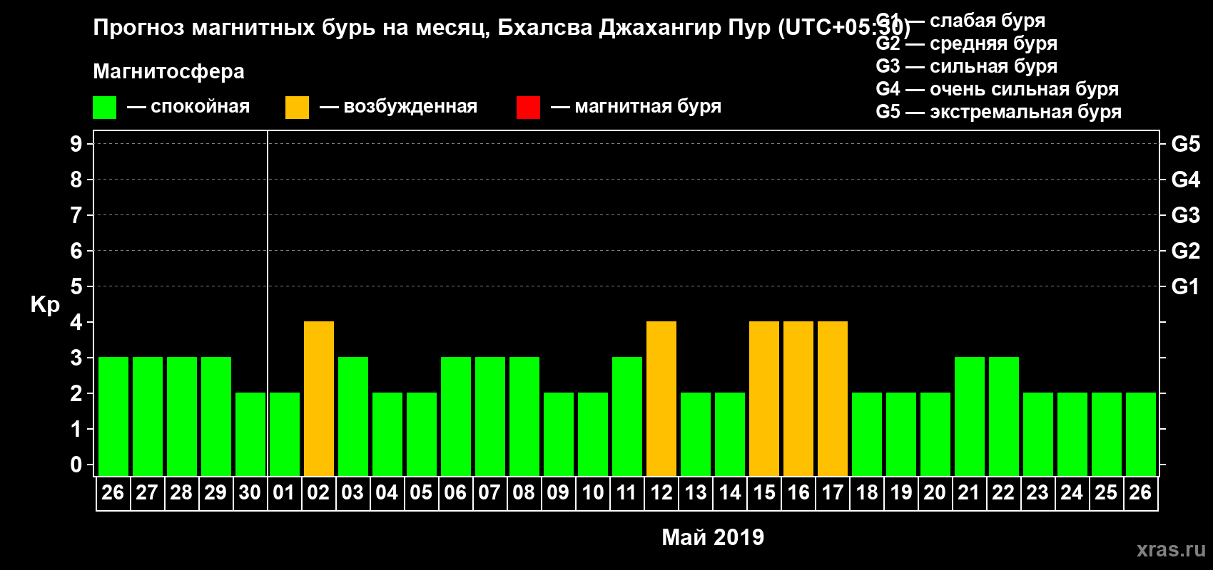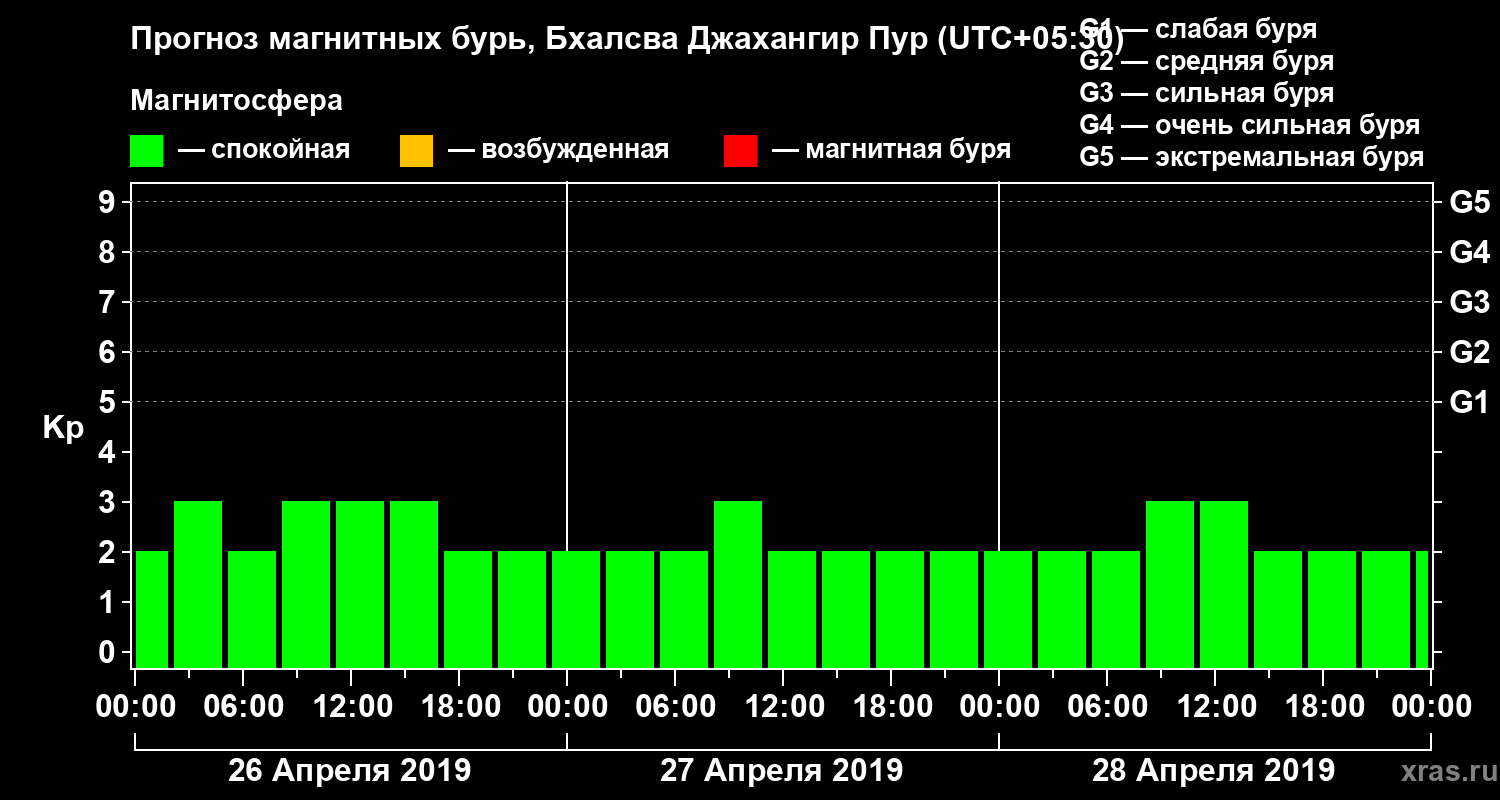 Прогноз магнитных бурь в Бхалсва Джахангир Пуре — 26 апреля 2019 года