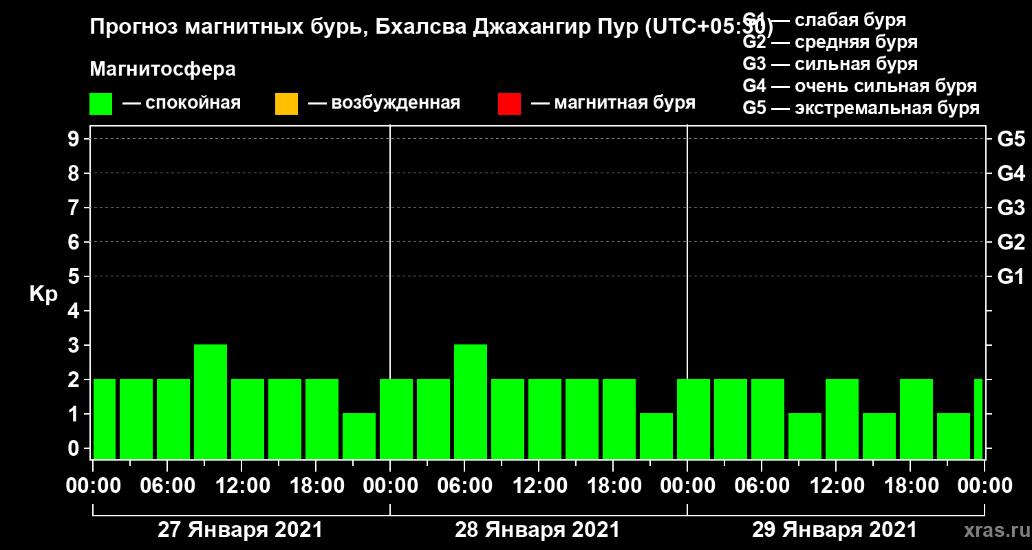 Прогноз магнитных бурь в Бхалсва Джахангир Пуре на 27 января 2021 года