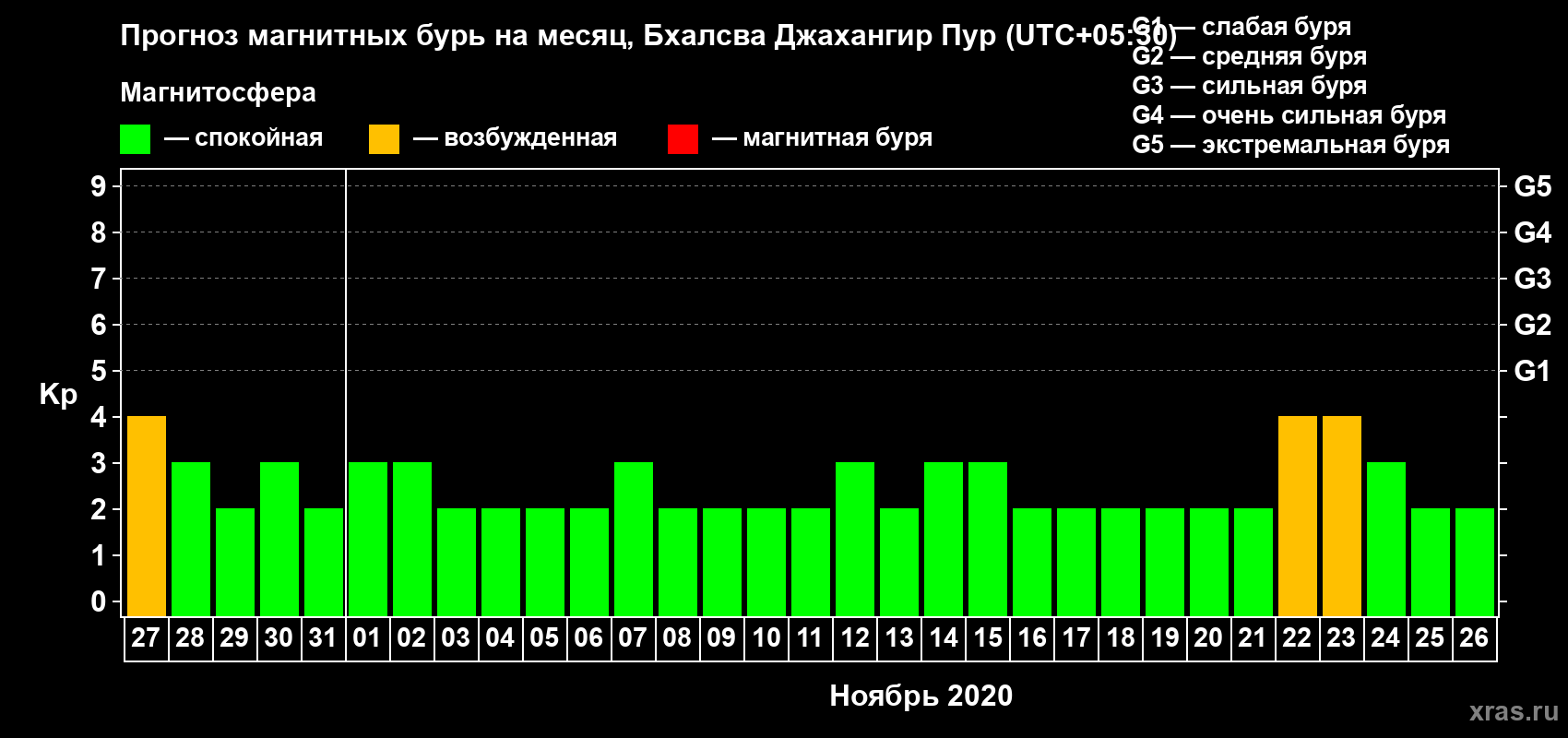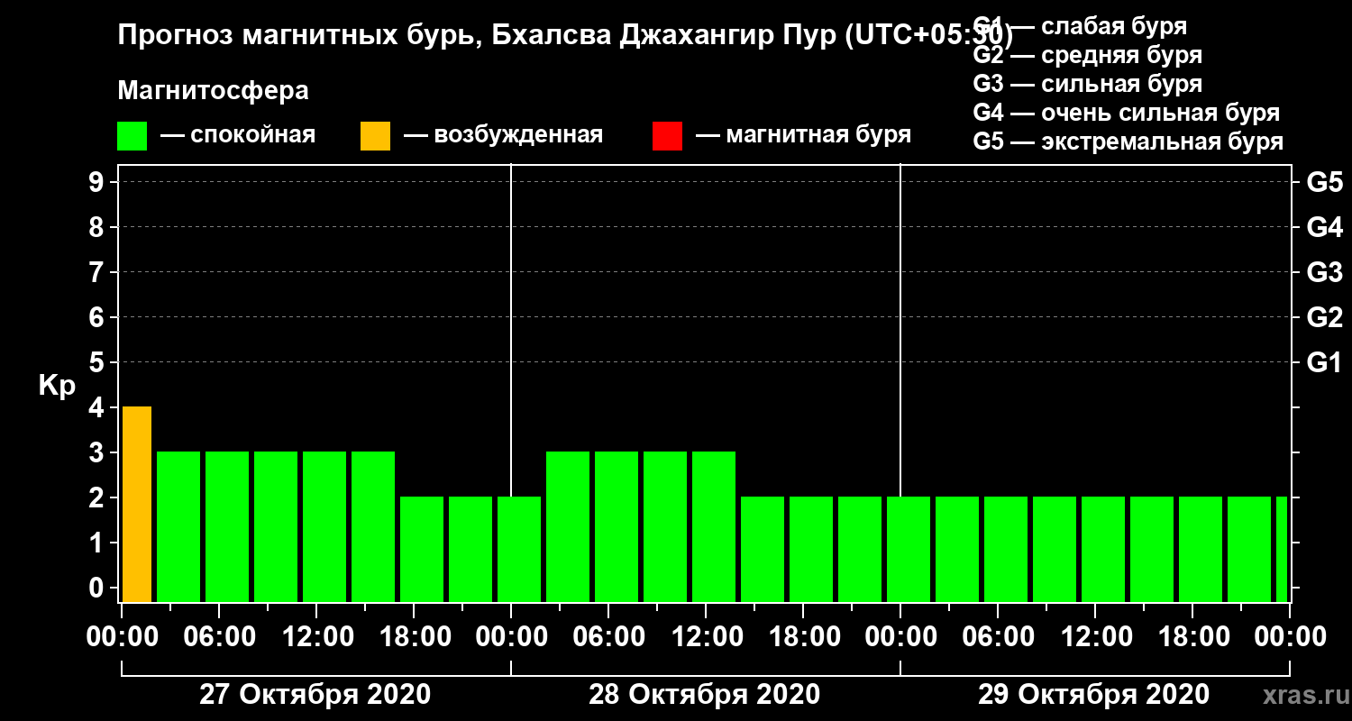 Прогноз магнитных бурь в Бхалсва Джахангир Пуре — 27 октября 2020 года
