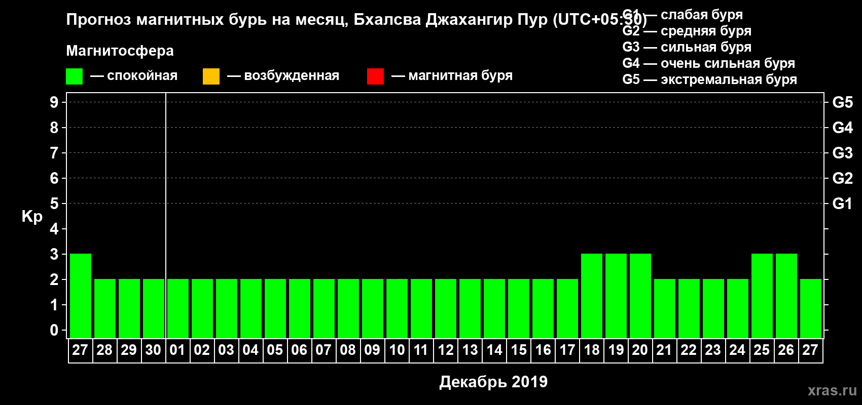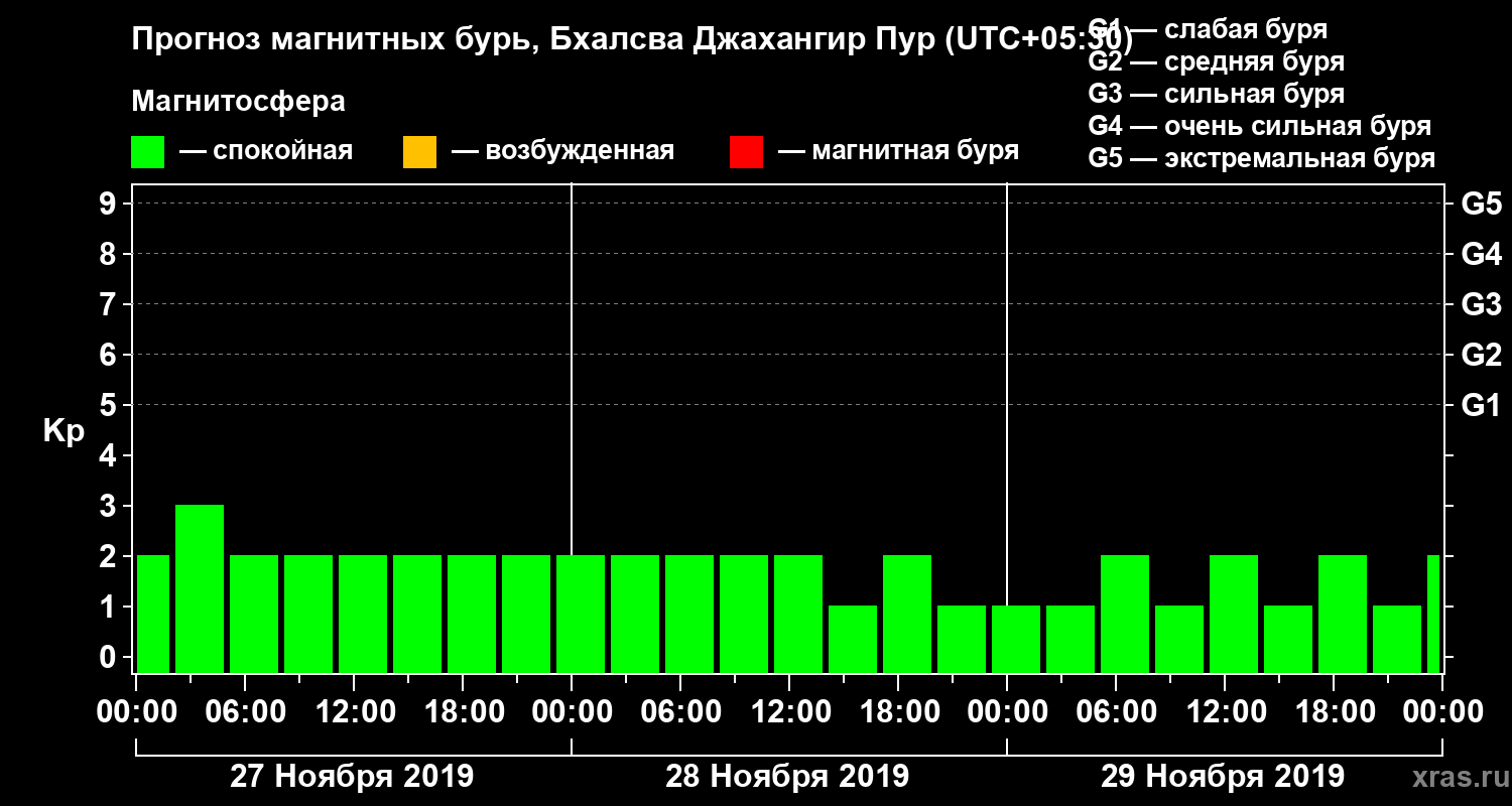 Прогноз магнитных бурь в Бхалсва Джахангир Пуре — 27 ноября 2019 года