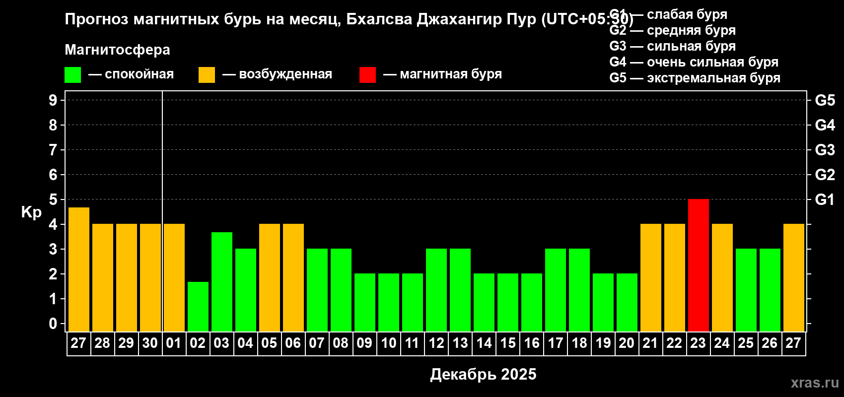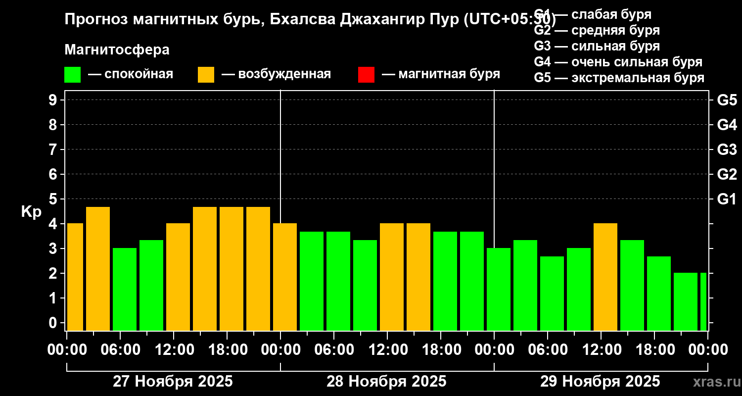 Прогноз магнитных бурь в Бхалсва Джахангир Пуре — 27 ноября 2025 года