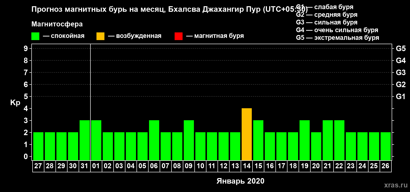 Прогноз магнитных бурь в Бхалсва Джахангир Пуре — 27 декабря 2019 года