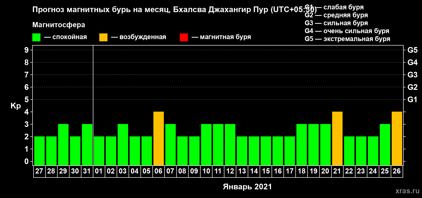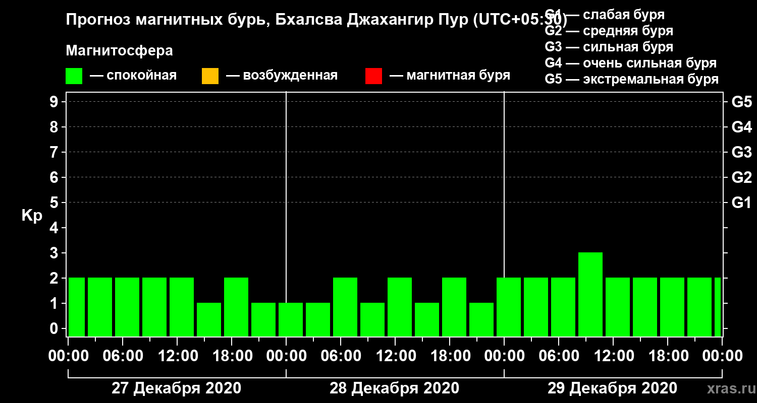 Прогноз магнитных бурь в Бхалсва Джахангир Пуре — 27 декабря 2020 года