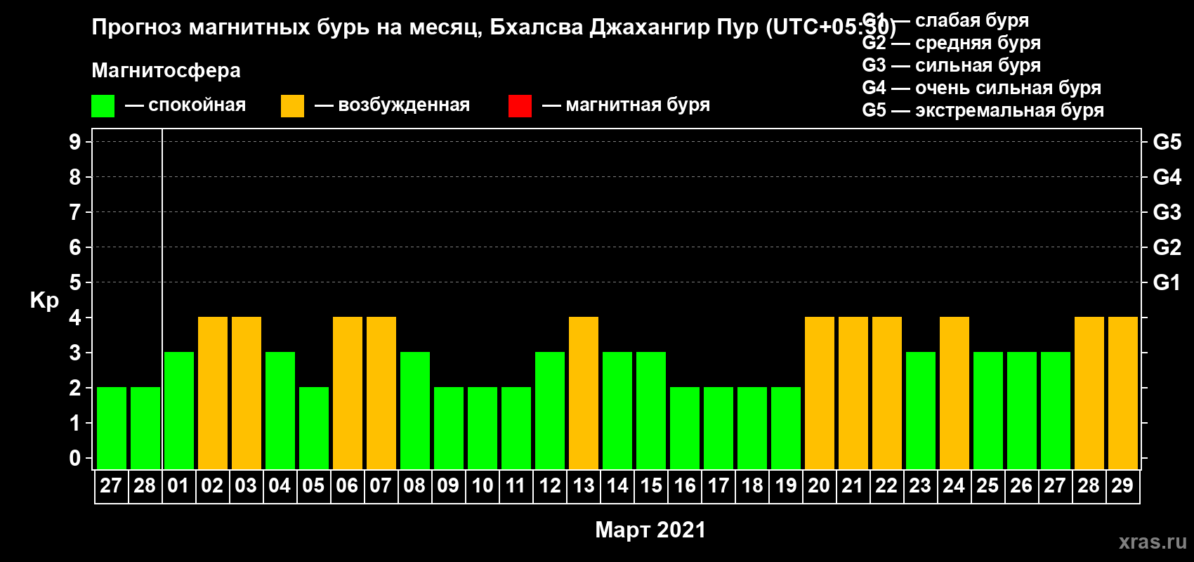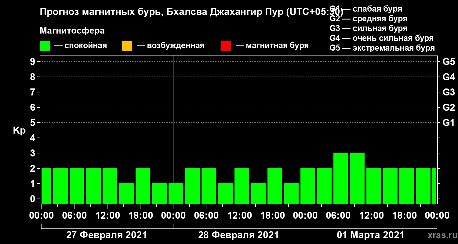 Прогноз магнитных бурь в Бхалсва Джахангир Пуре — 27 февраля 2021 года