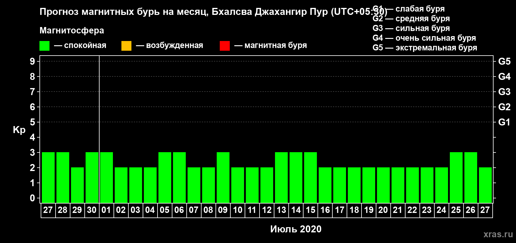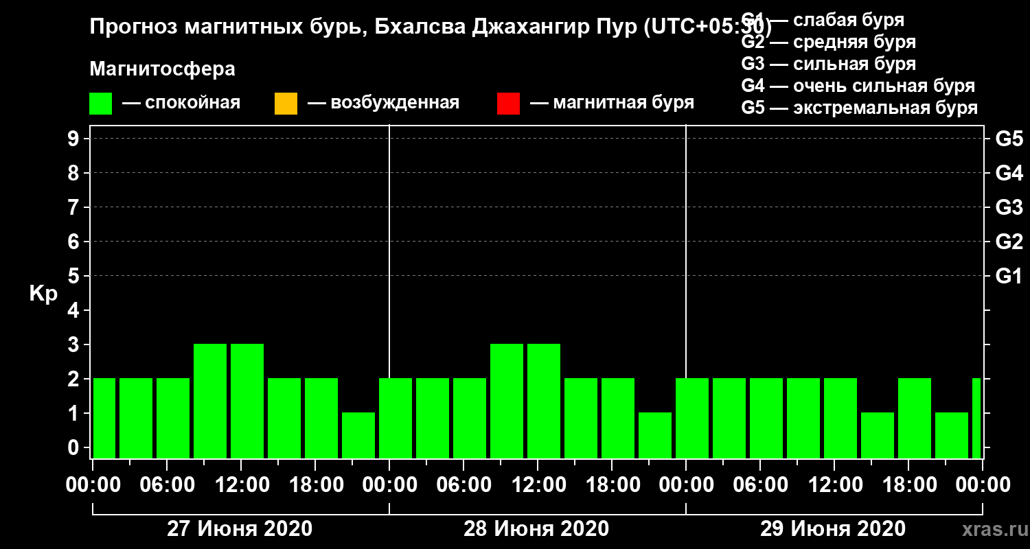 Прогноз магнитных бурь в Бхалсва Джахангир Пуре — 27 июня 2020 года