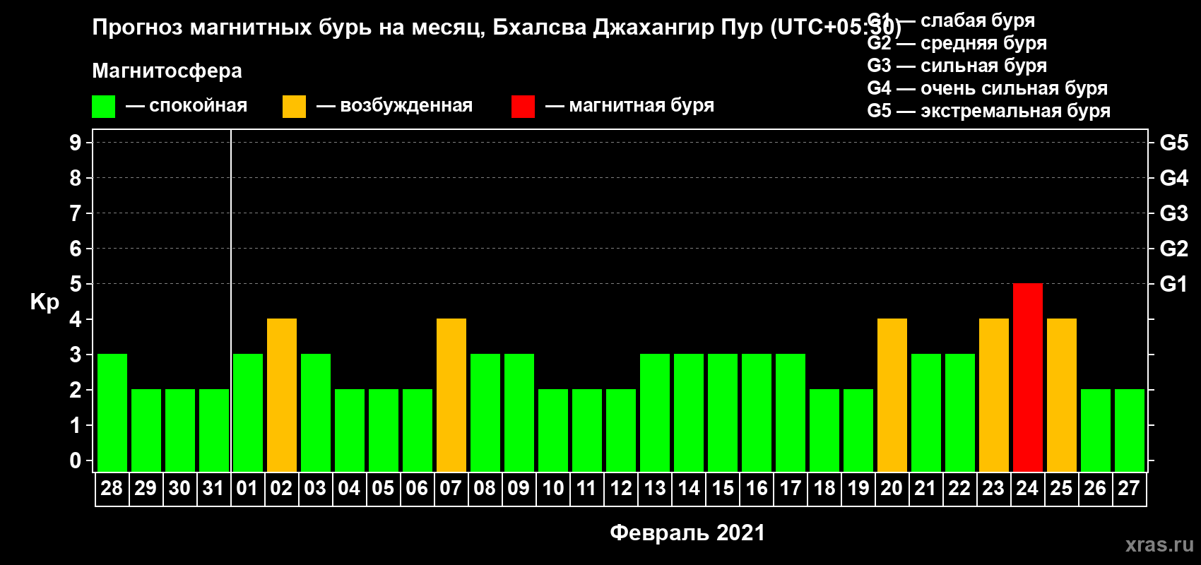 Прогноз магнитных бурь в Бхалсва Джахангир Пуре — 28 января 2021 года
