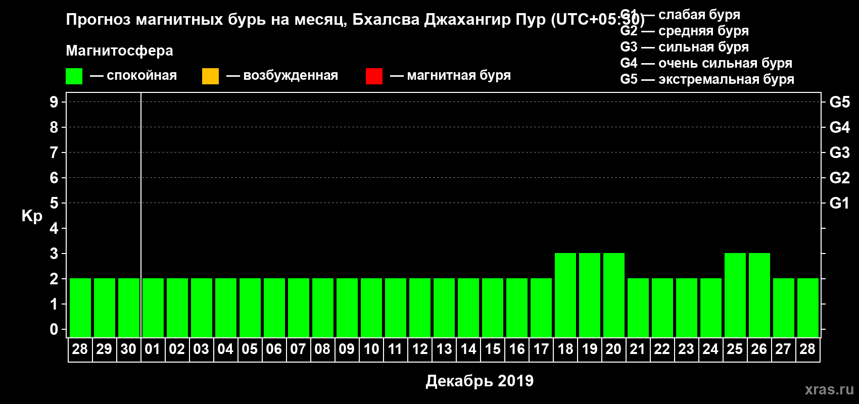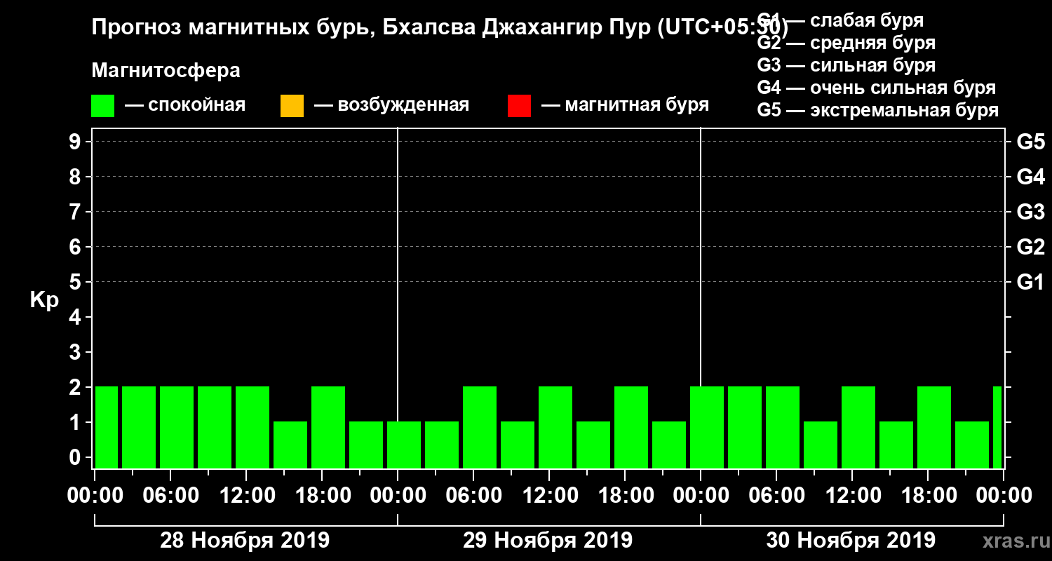 Прогноз магнитных бурь в Бхалсва Джахангир Пуре — 28 ноября 2019 года