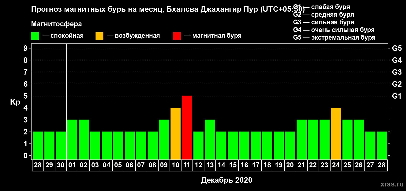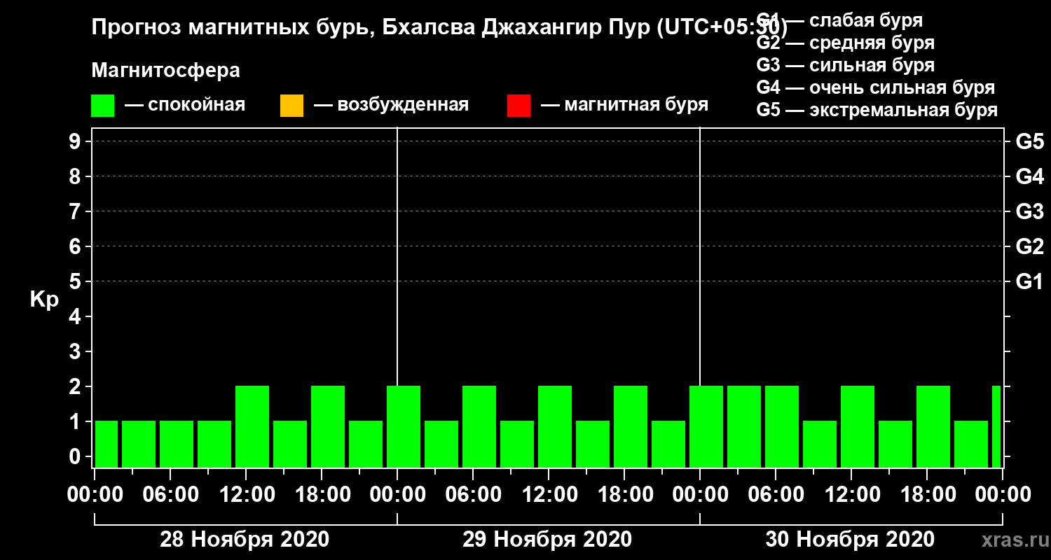 Прогноз магнитных бурь в Бхалсва Джахангир Пуре — 28 ноября 2020 года