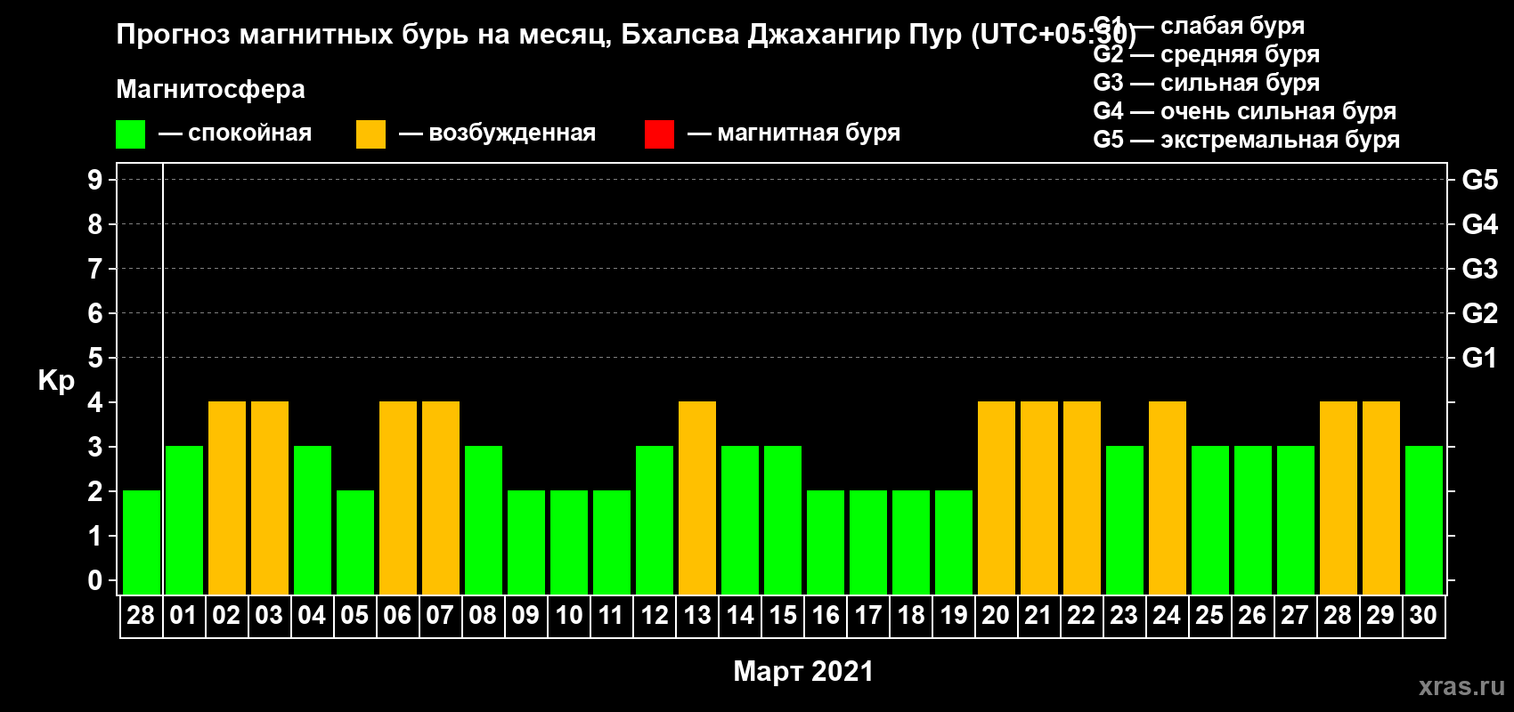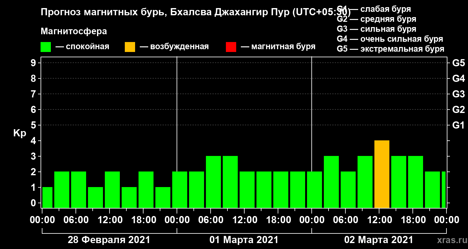 Прогноз магнитных бурь в Бхалсва Джахангир Пуре — 28 февраля 2021 года