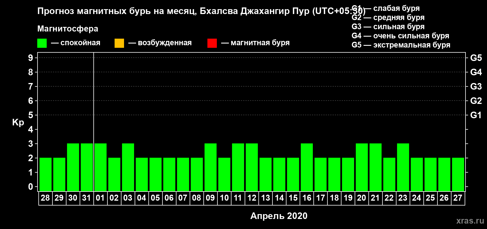 Прогноз магнитных бурь в Бхалсва Джахангир Пуре — 28 марта 2020 года