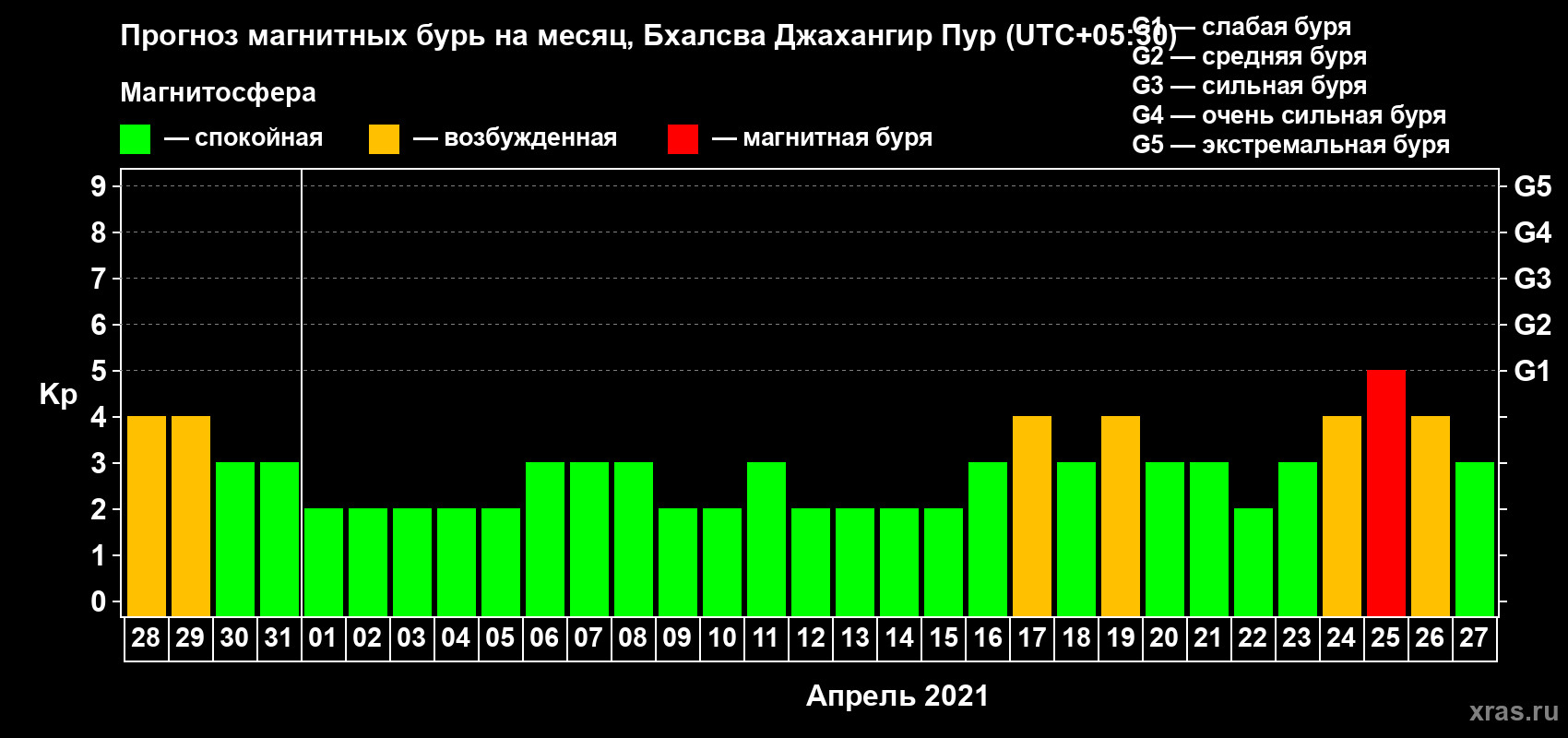 Прогноз магнитных бурь в Бхалсва Джахангир Пуре — 28 марта 2021 года