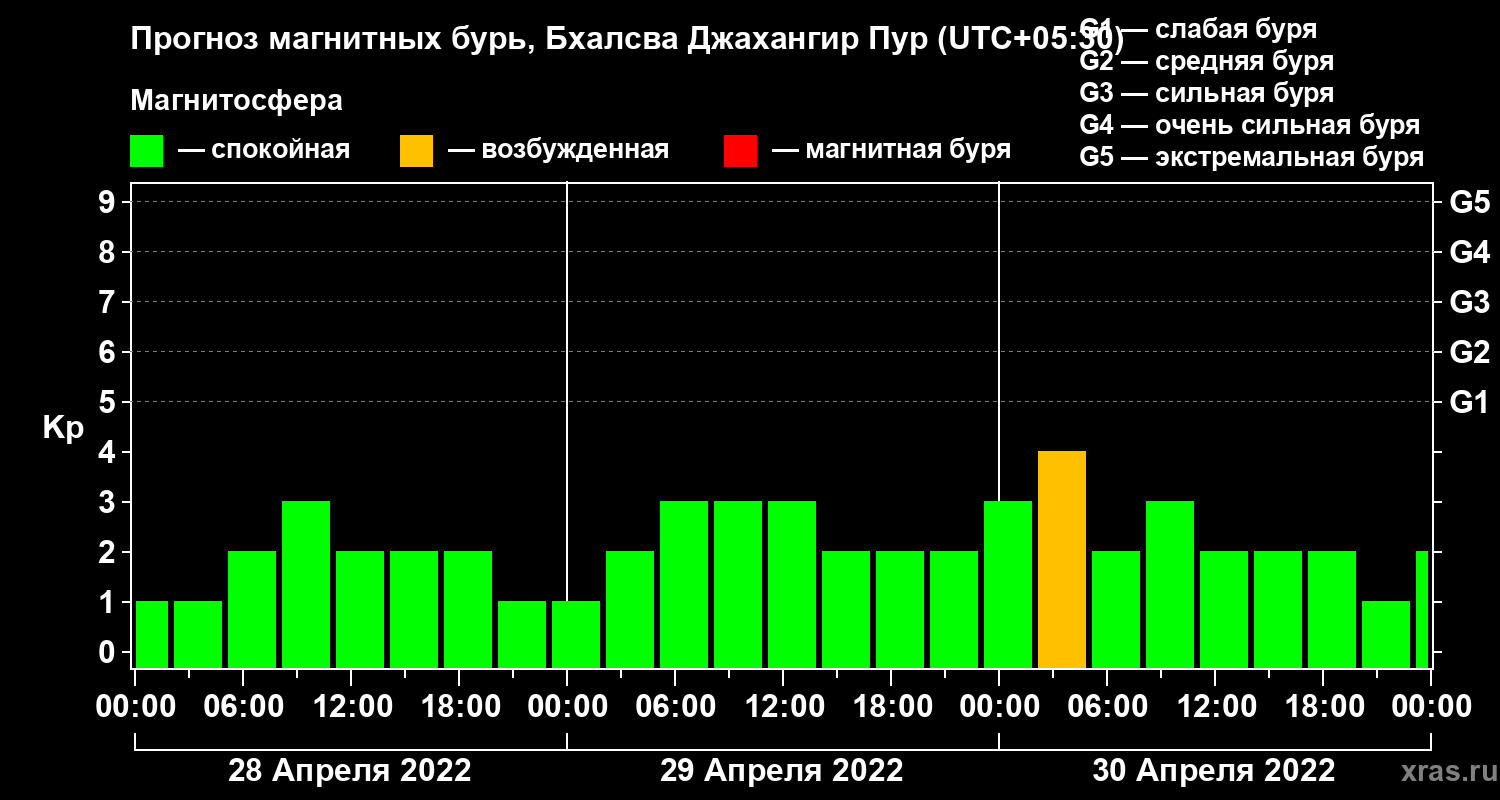 Прогноз магнитных бурь в Бхалсва Джахангир Пуре — 28 апреля 2022 года
