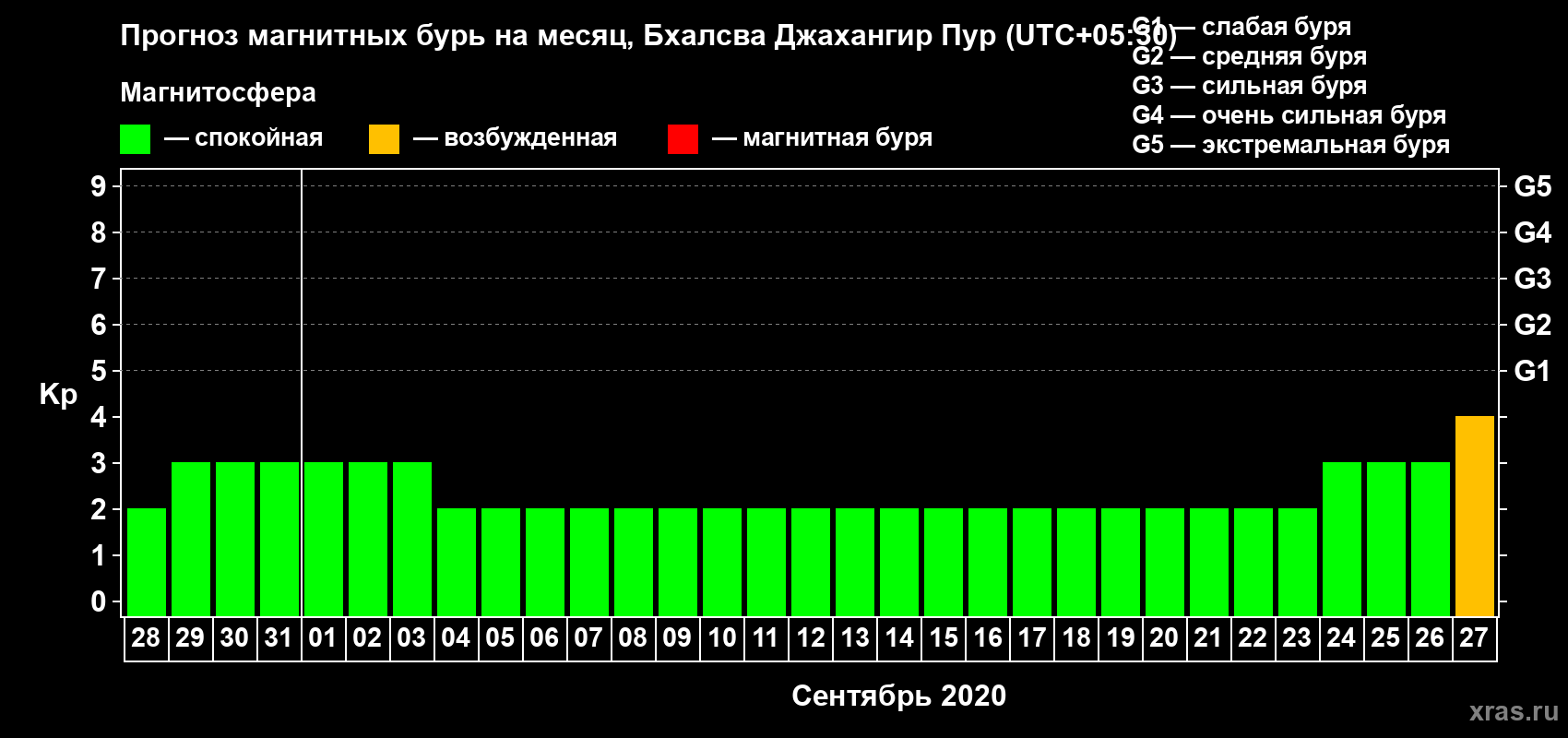 Прогноз магнитных бурь в Бхалсва Джахангир Пуре — 28 августа 2020 года