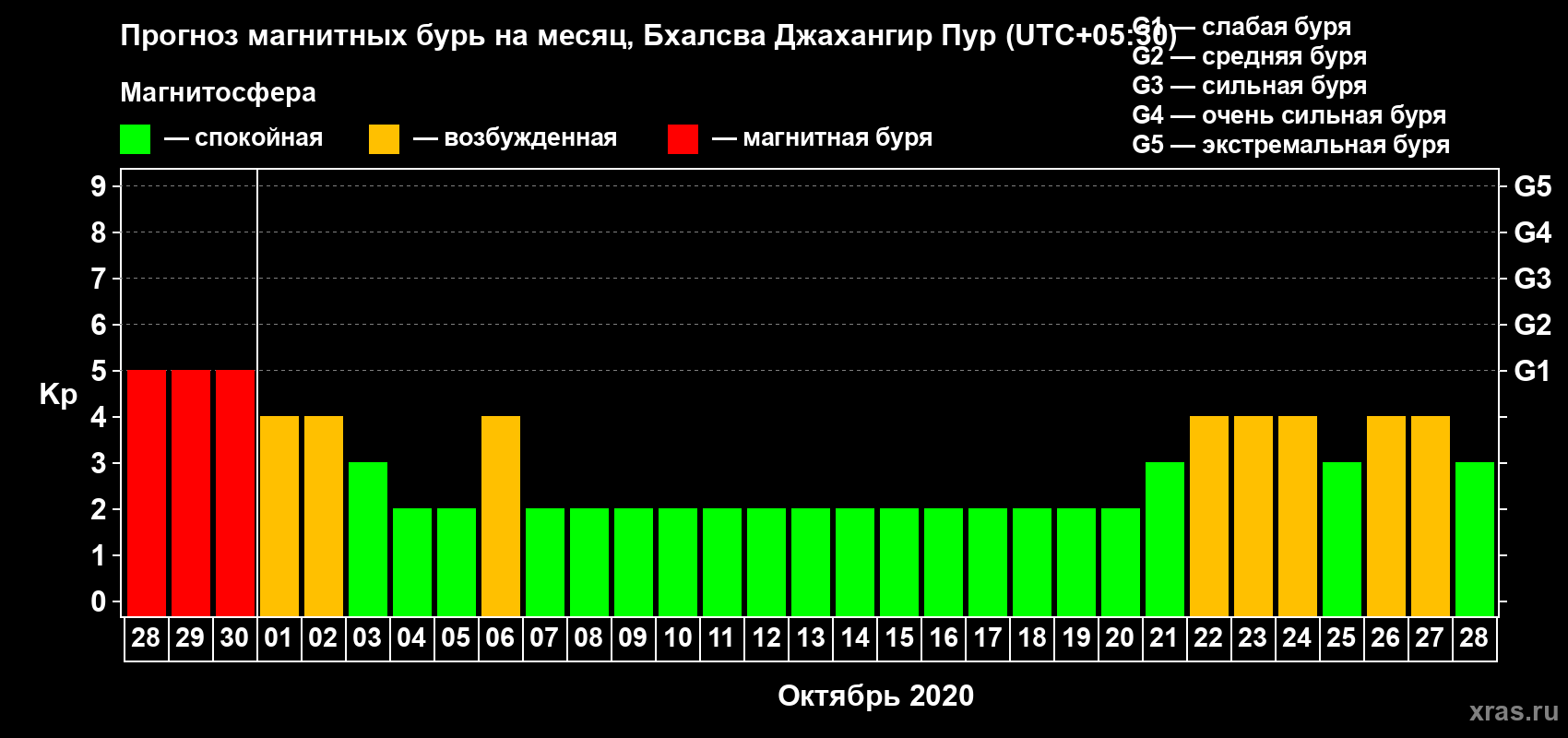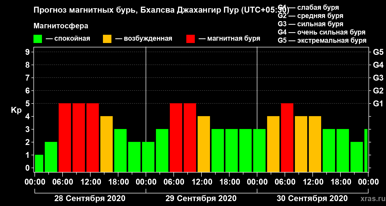 Прогноз магнитных бурь в Бхалсва Джахангир Пуре — 28 сентября 2020 года