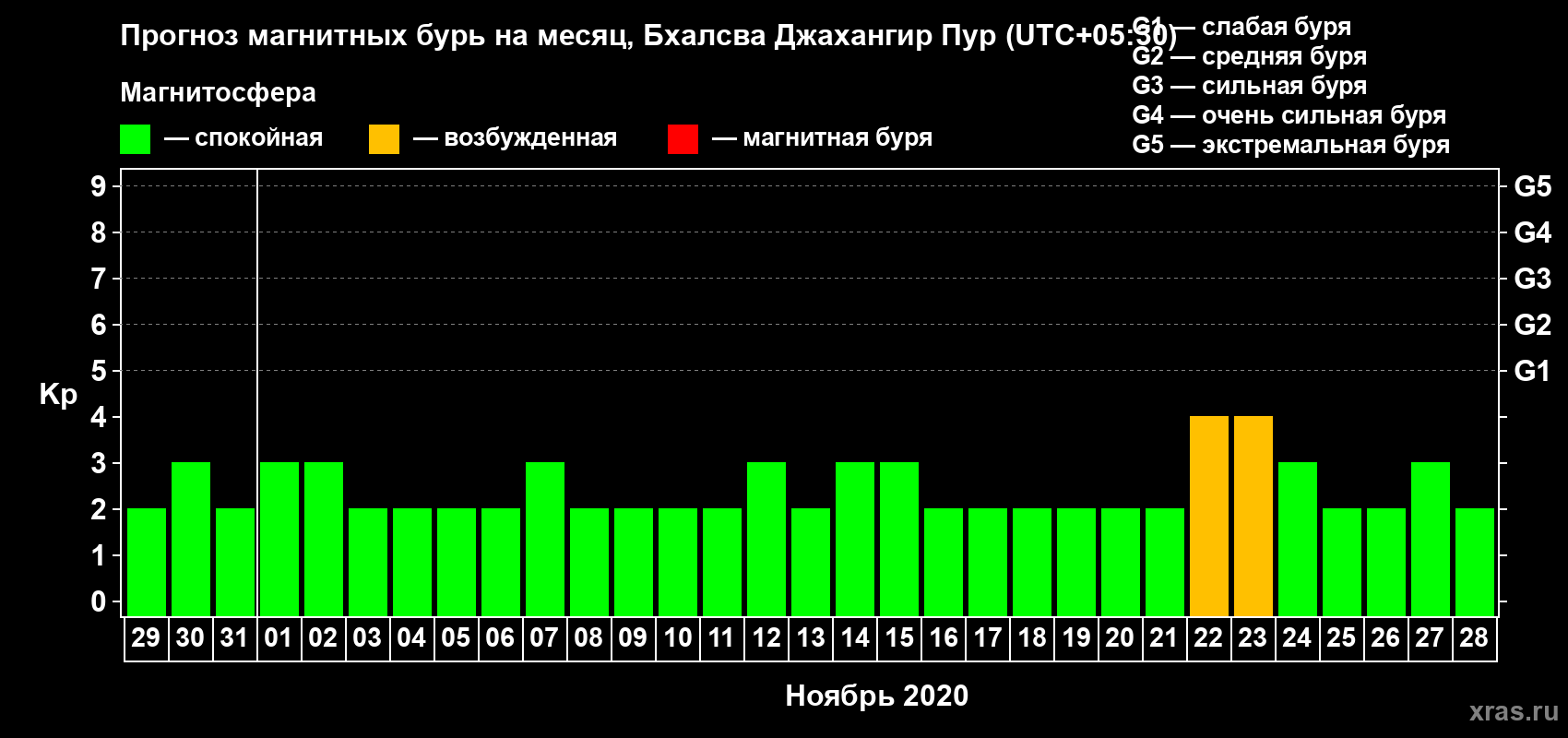 Прогноз магнитных бурь в Бхалсва Джахангир Пуре — 29 октября 2020 года