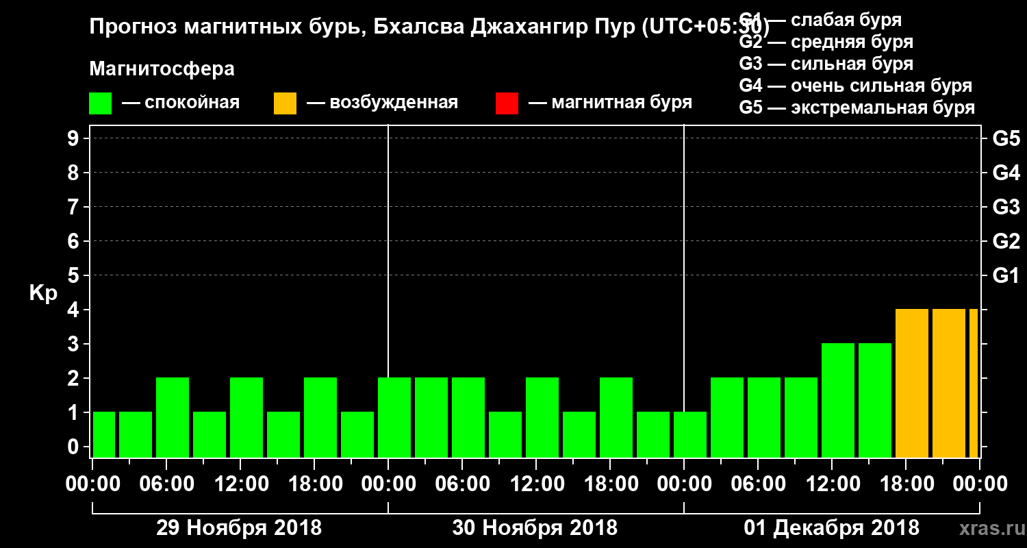 Прогноз магнитных бурь в Бхалсва Джахангир Пуре — 29 ноября 2018 года