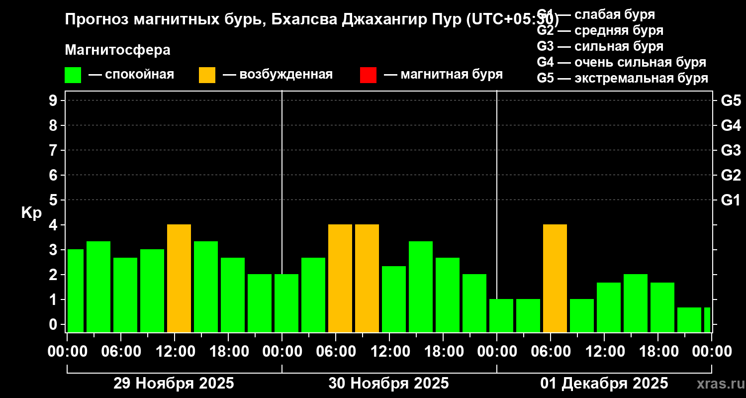 Прогноз магнитных бурь в Бхалсва Джахангир Пуре — 29 ноября 2025 года