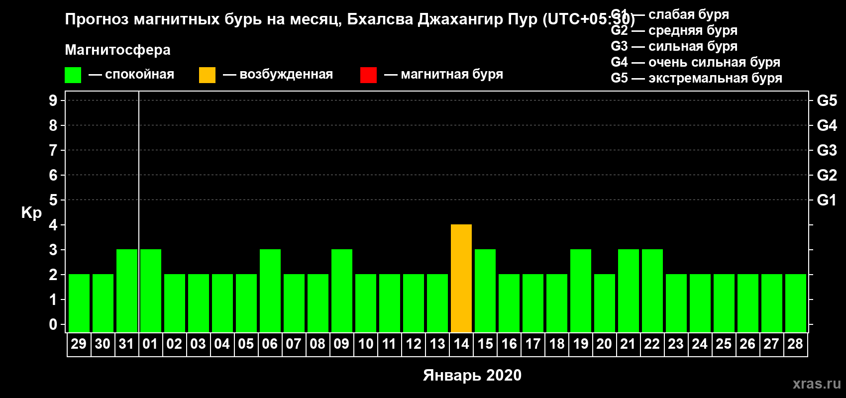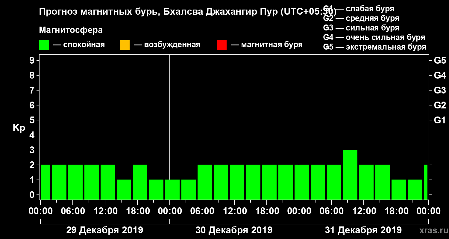 Прогноз магнитных бурь в Бхалсва Джахангир Пуре — 29 декабря 2019 года