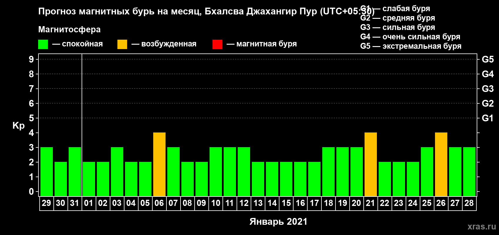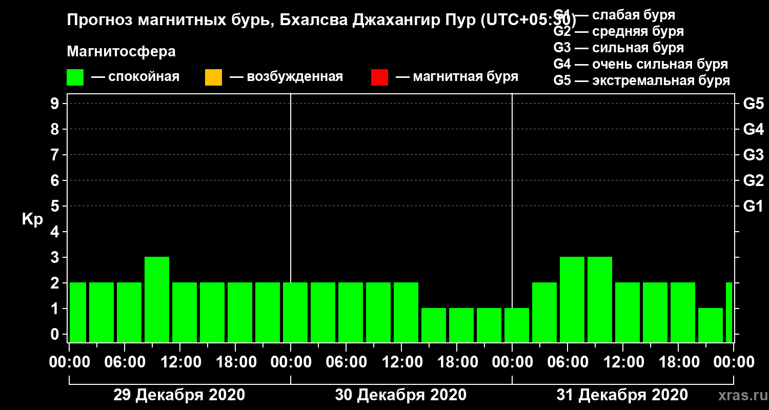 Прогноз магнитных бурь в Бхалсва Джахангир Пуре — 29 декабря 2020 года
