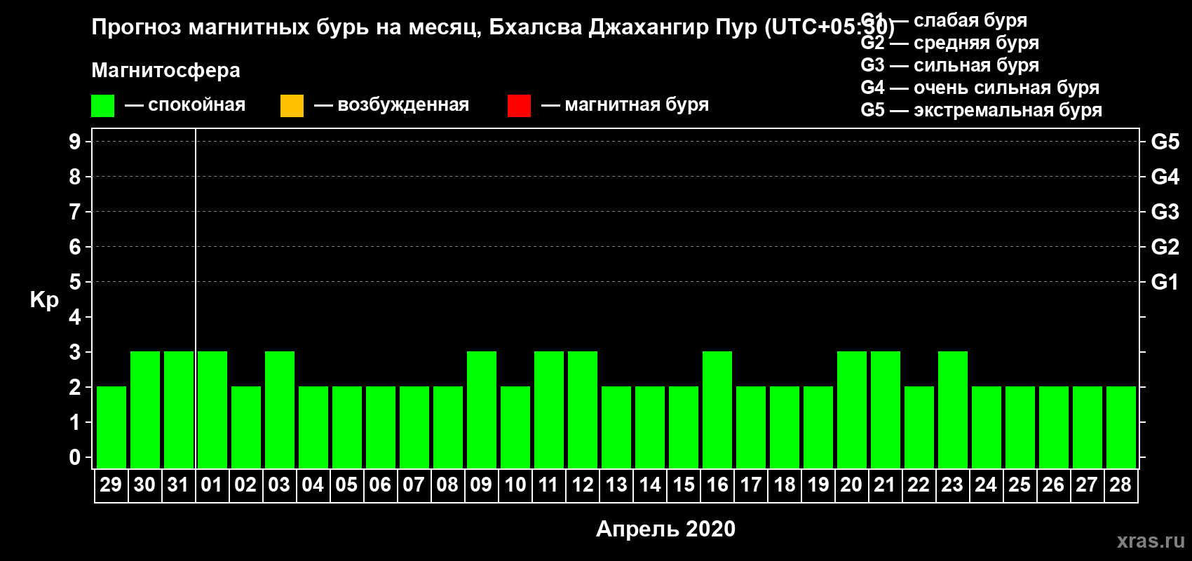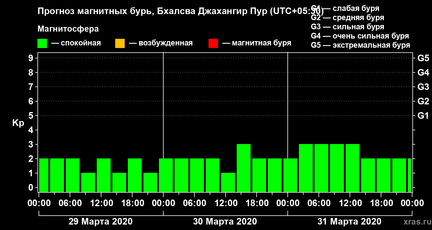 Прогноз магнитных бурь в Бхалсва Джахангир Пуре — 29 марта 2020 года