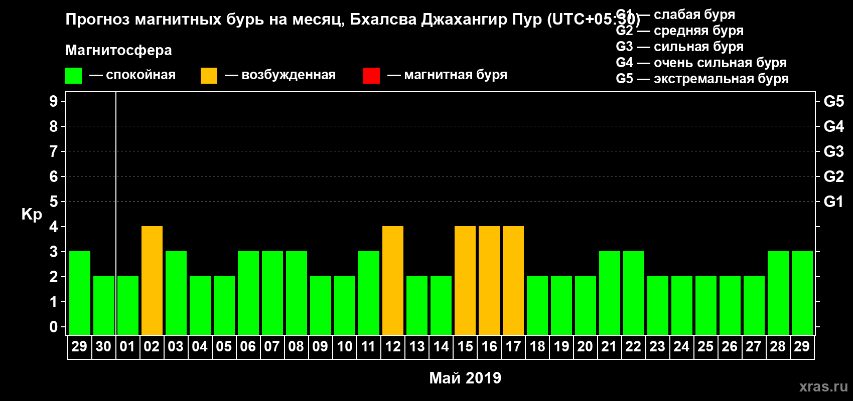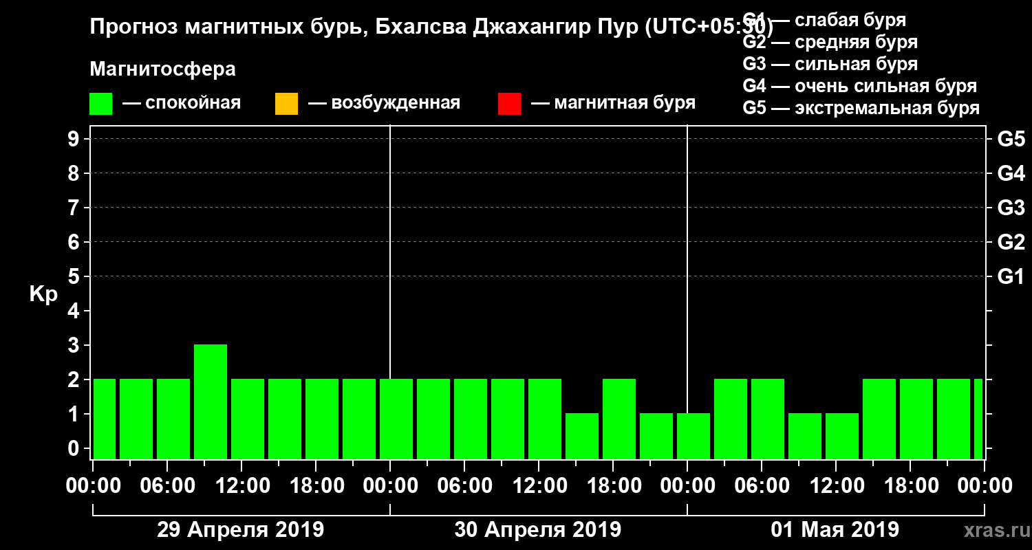 Прогноз магнитных бурь в Бхалсва Джахангир Пуре — 29 апреля 2019 года