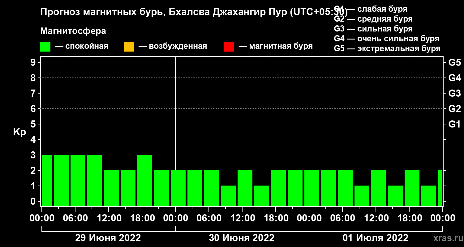 Прогноз магнитных бурь в Бхалсва Джахангир Пуре — 29 июня 2022 года