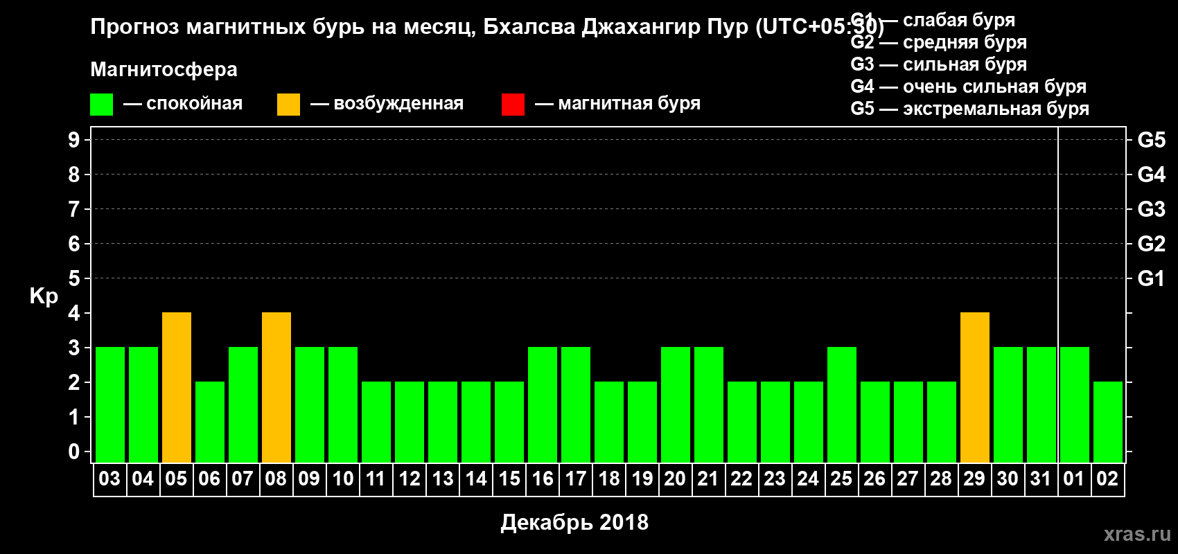 Прогноз магнитных бурь в Бхалсва Джахангир Пуре — 3 декабря 2018 года
