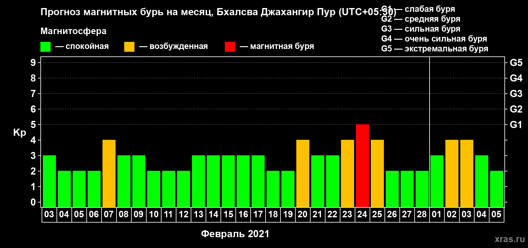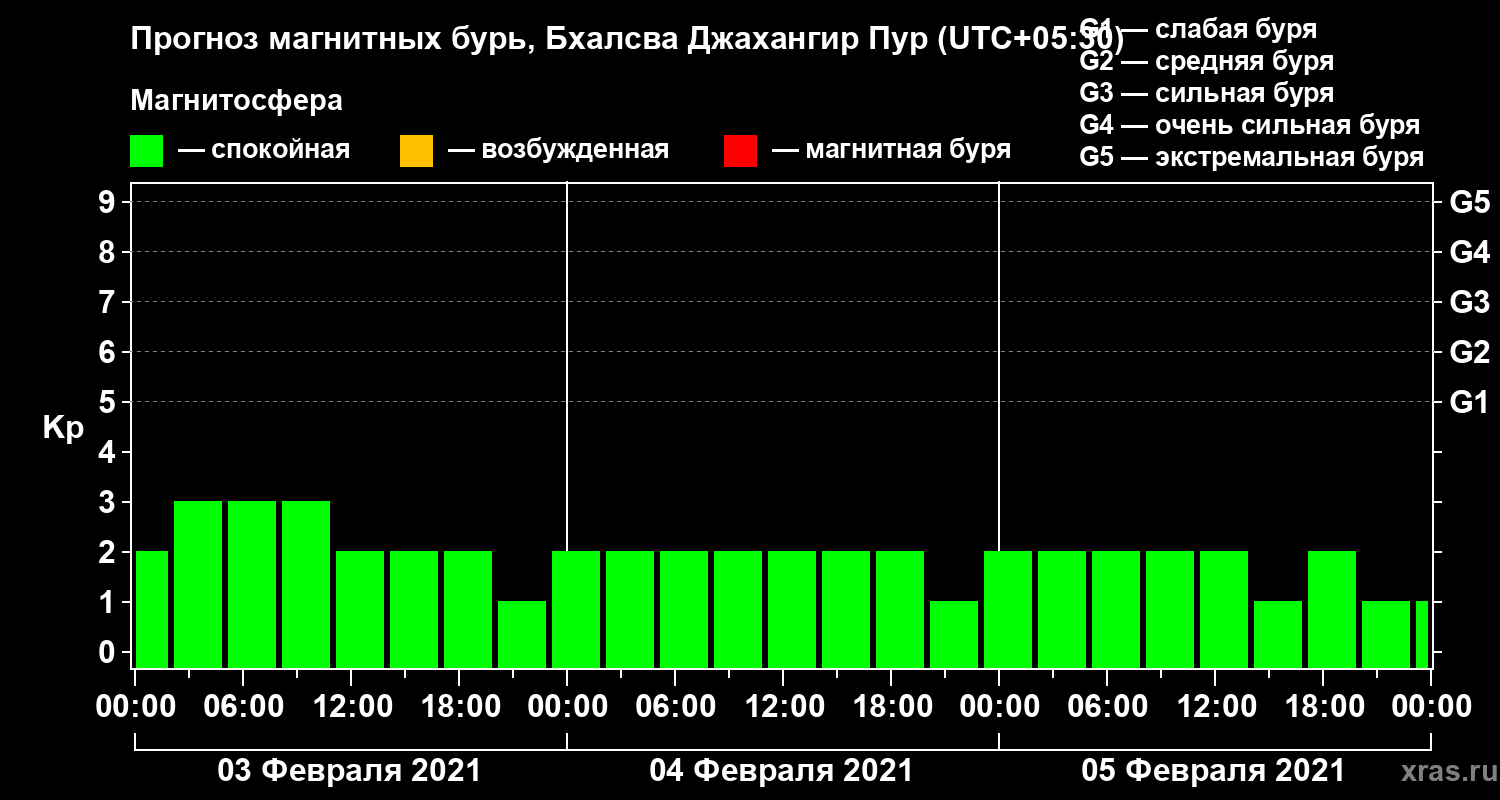 Прогноз магнитных бурь в Бхалсва Джахангир Пуре — 3 февраля 2021 года