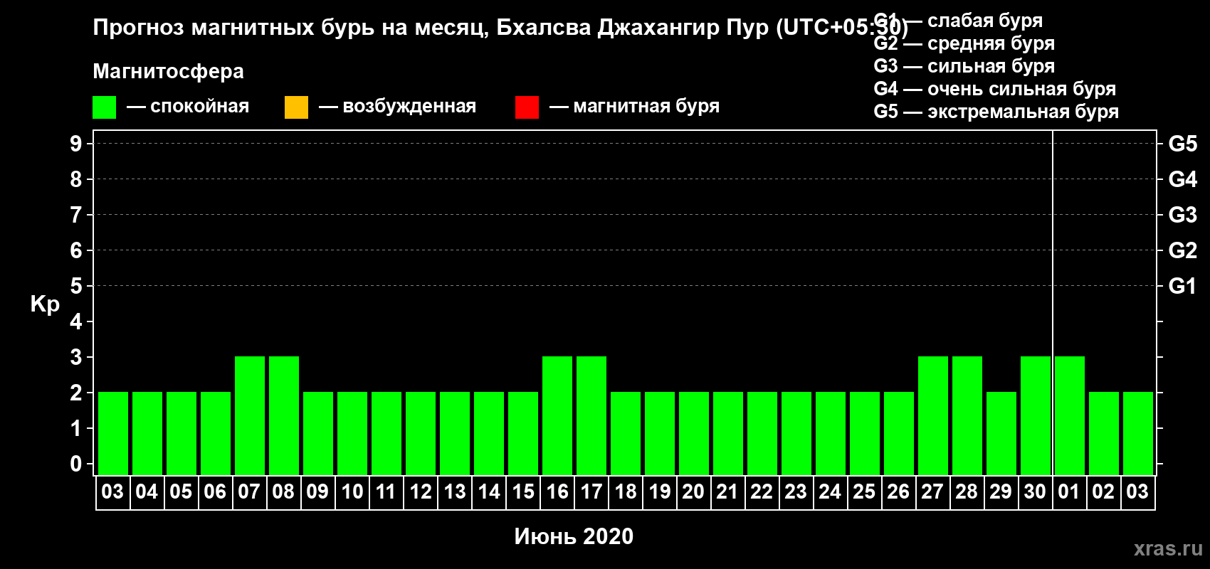 Прогноз магнитных бурь в Бхалсва Джахангир Пуре — 3 июня 2020 года