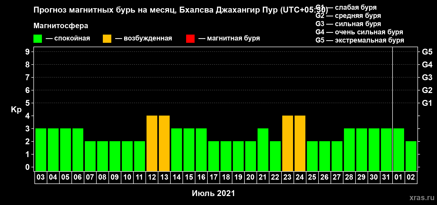 Прогноз магнитных бурь в Бхалсва Джахангир Пуре — 3 июля 2021 года