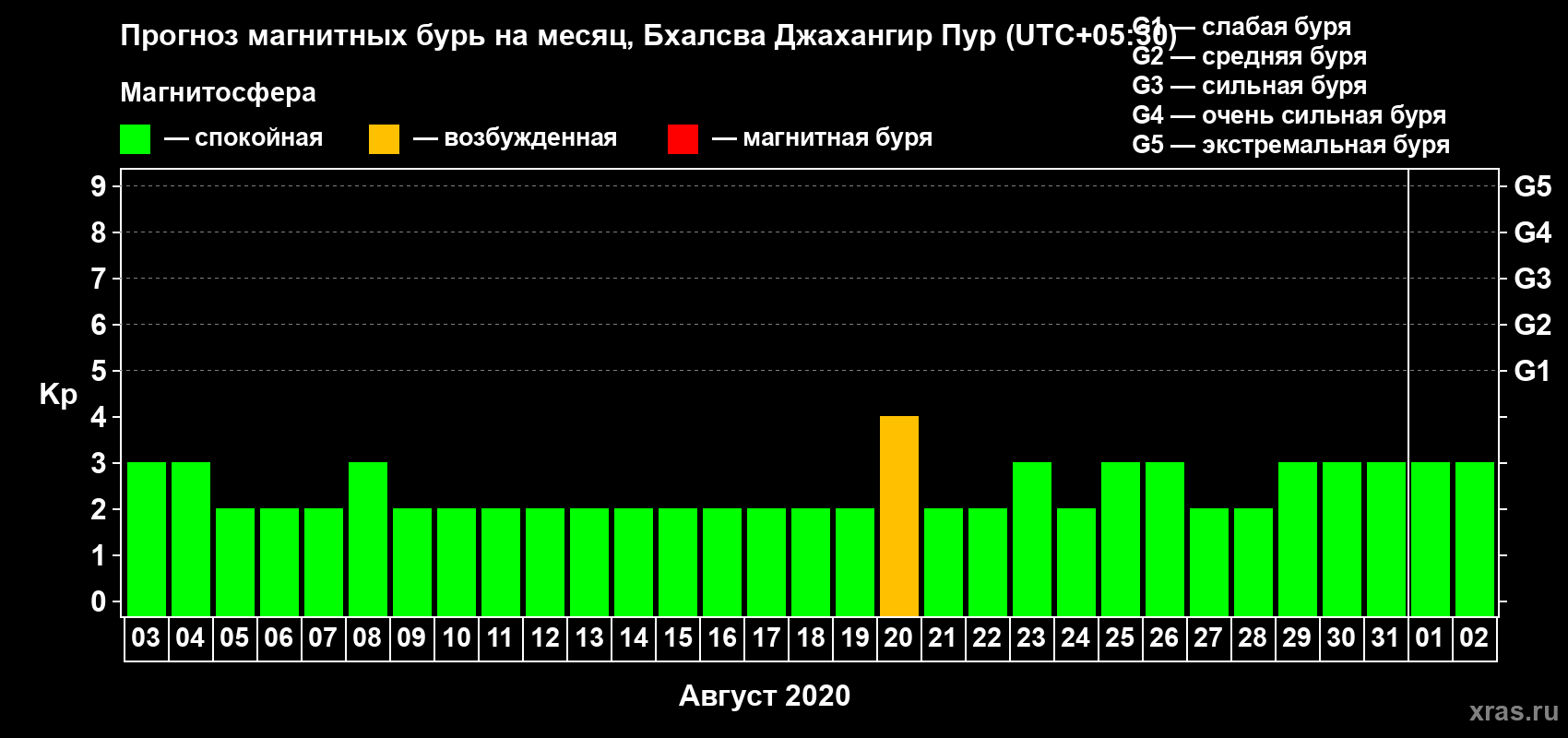 Прогноз магнитных бурь в Бхалсва Джахангир Пуре — 3 августа 2020 года