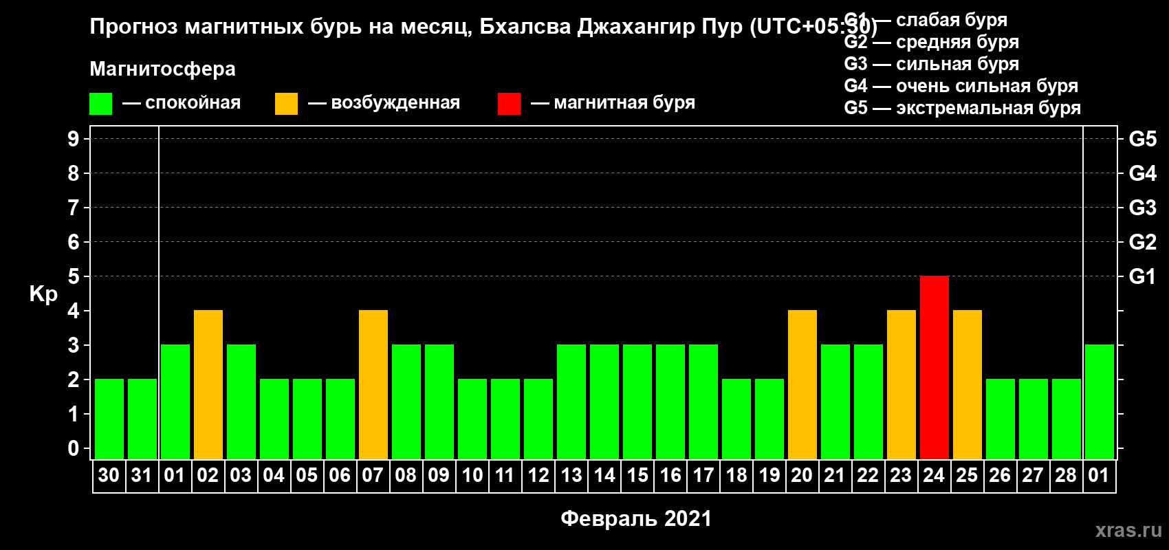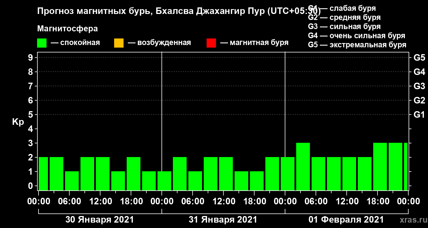 Прогноз магнитных бурь в Бхалсва Джахангир Пуре — 30 января 2021 года