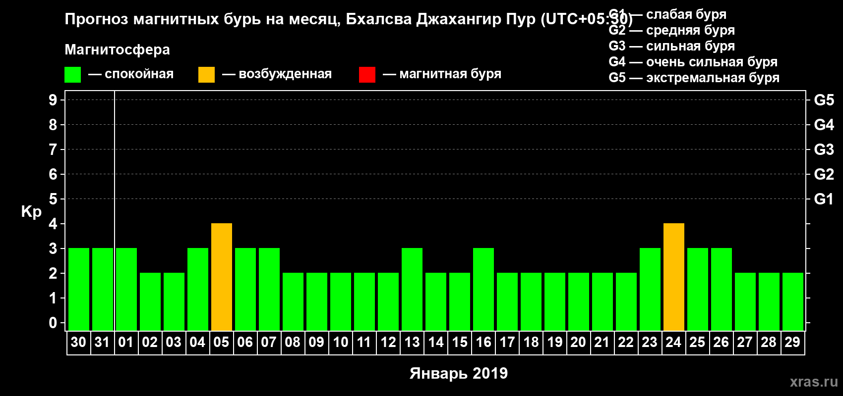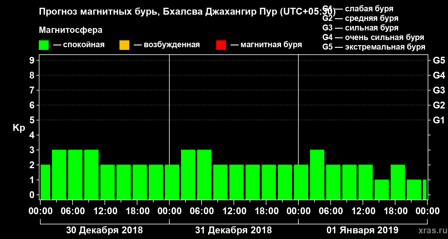 Прогноз магнитных бурь в Бхалсва Джахангир Пуре — 30 декабря 2018 года