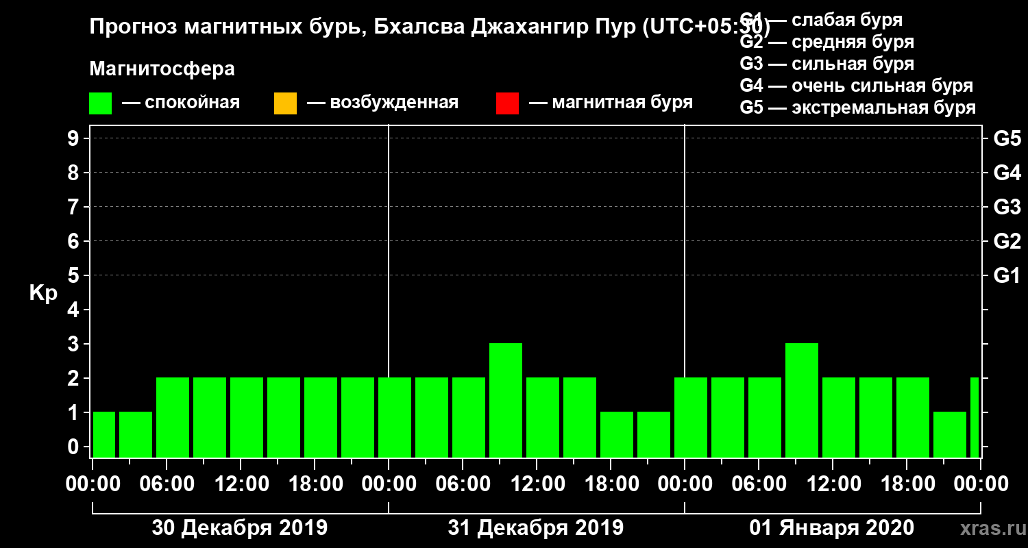 Прогноз магнитных бурь в Бхалсва Джахангир Пуре — 30 декабря 2019 года