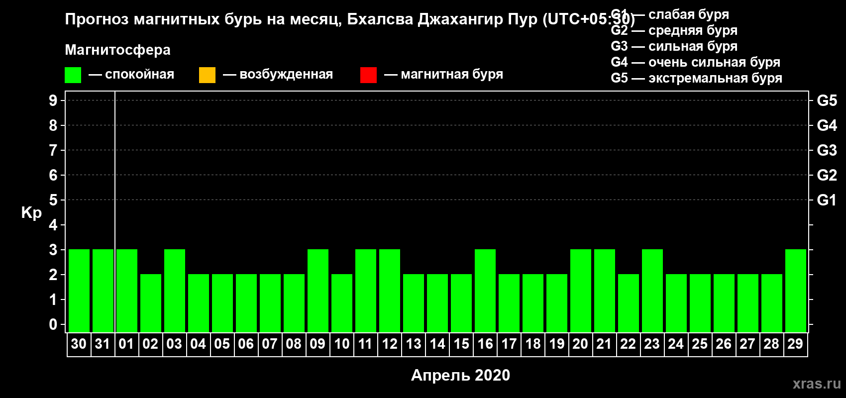 Прогноз магнитных бурь в Бхалсва Джахангир Пуре — 30 марта 2020 года