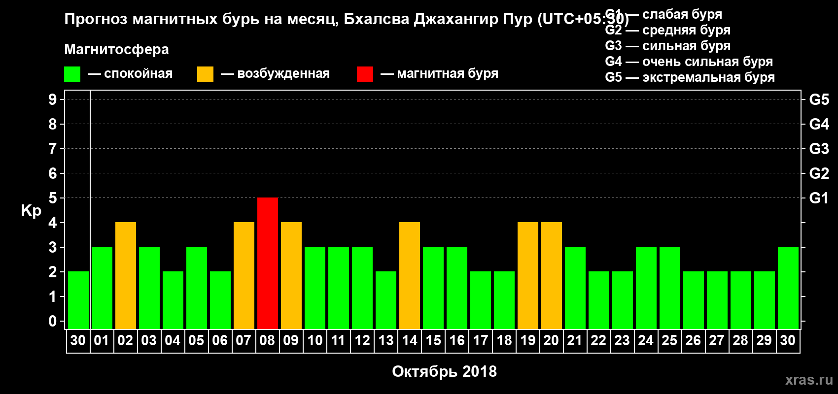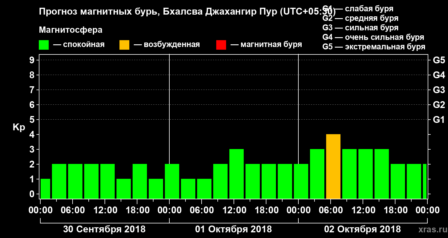 Прогноз магнитных бурь в Бхалсва Джахангир Пуре — 30 сентября 2018 года