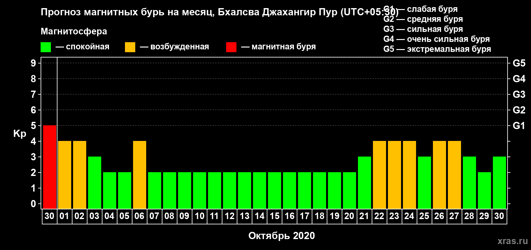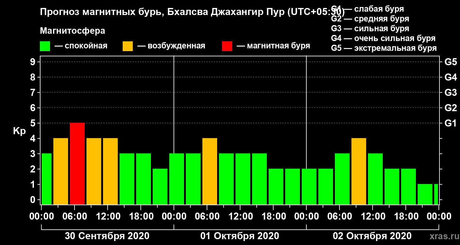 Прогноз магнитных бурь в Бхалсва Джахангир Пуре — 30 сентября 2020 года