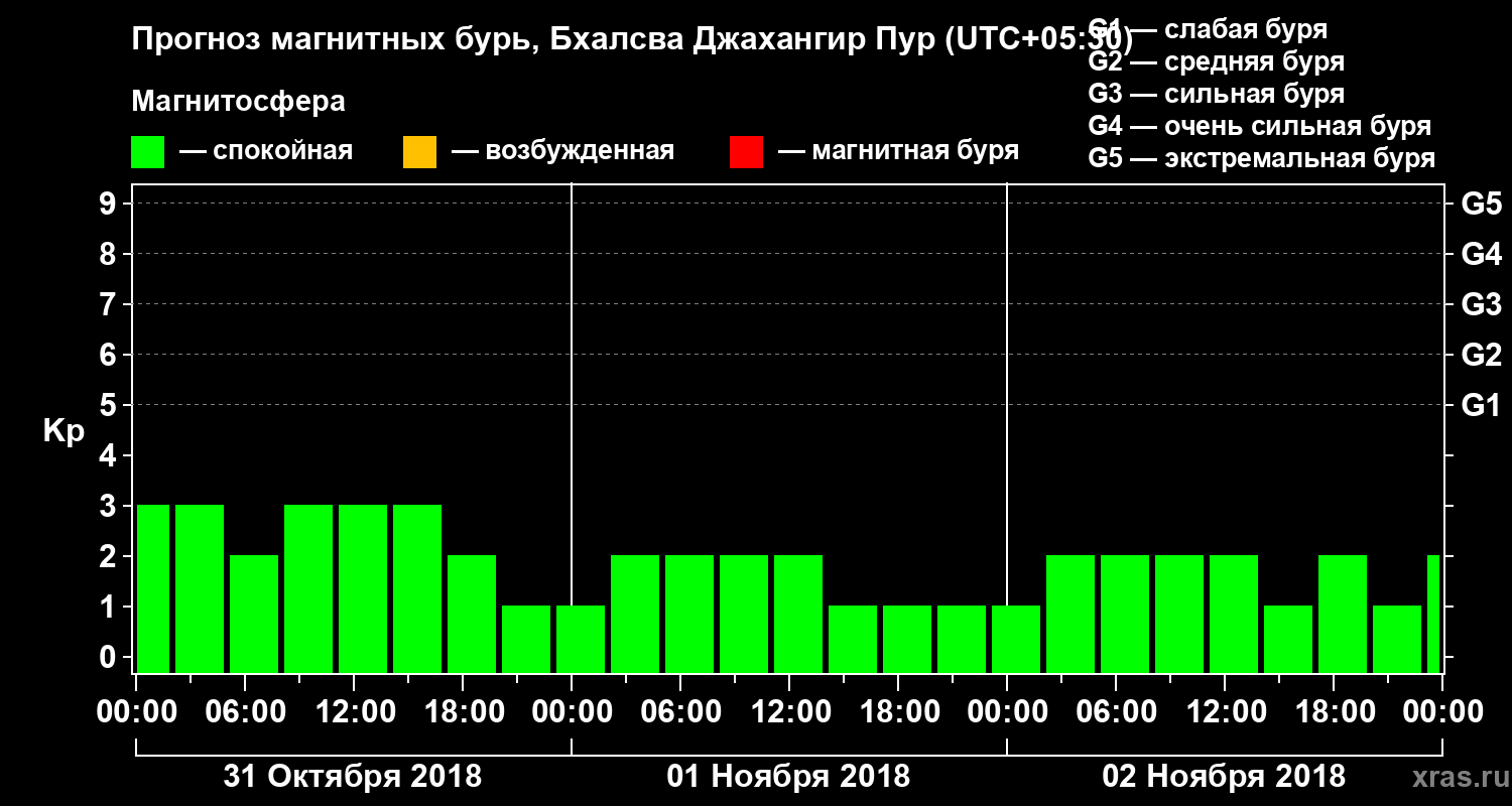 Прогноз магнитных бурь в Бхалсва Джахангир Пуре — 31 октября 2018 года