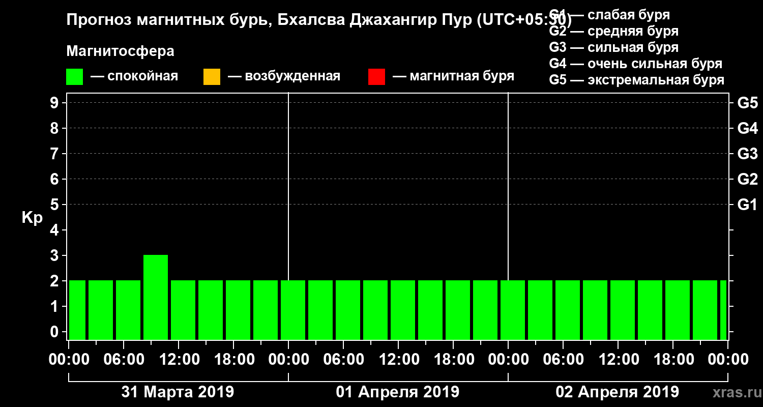 Прогноз магнитных бурь в Бхалсва Джахангир Пуре — 31 марта 2019 года