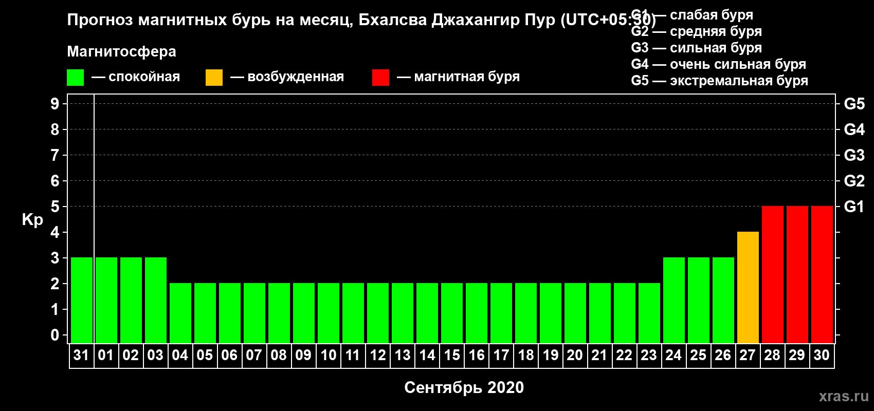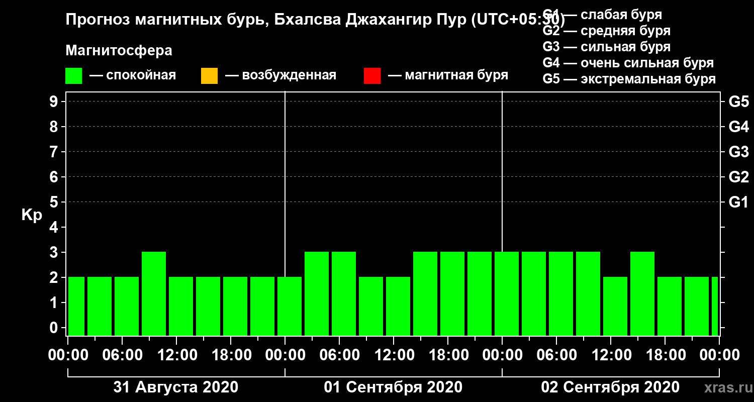 Прогноз магнитных бурь в Бхалсва Джахангир Пуре — 31 августа 2020 года