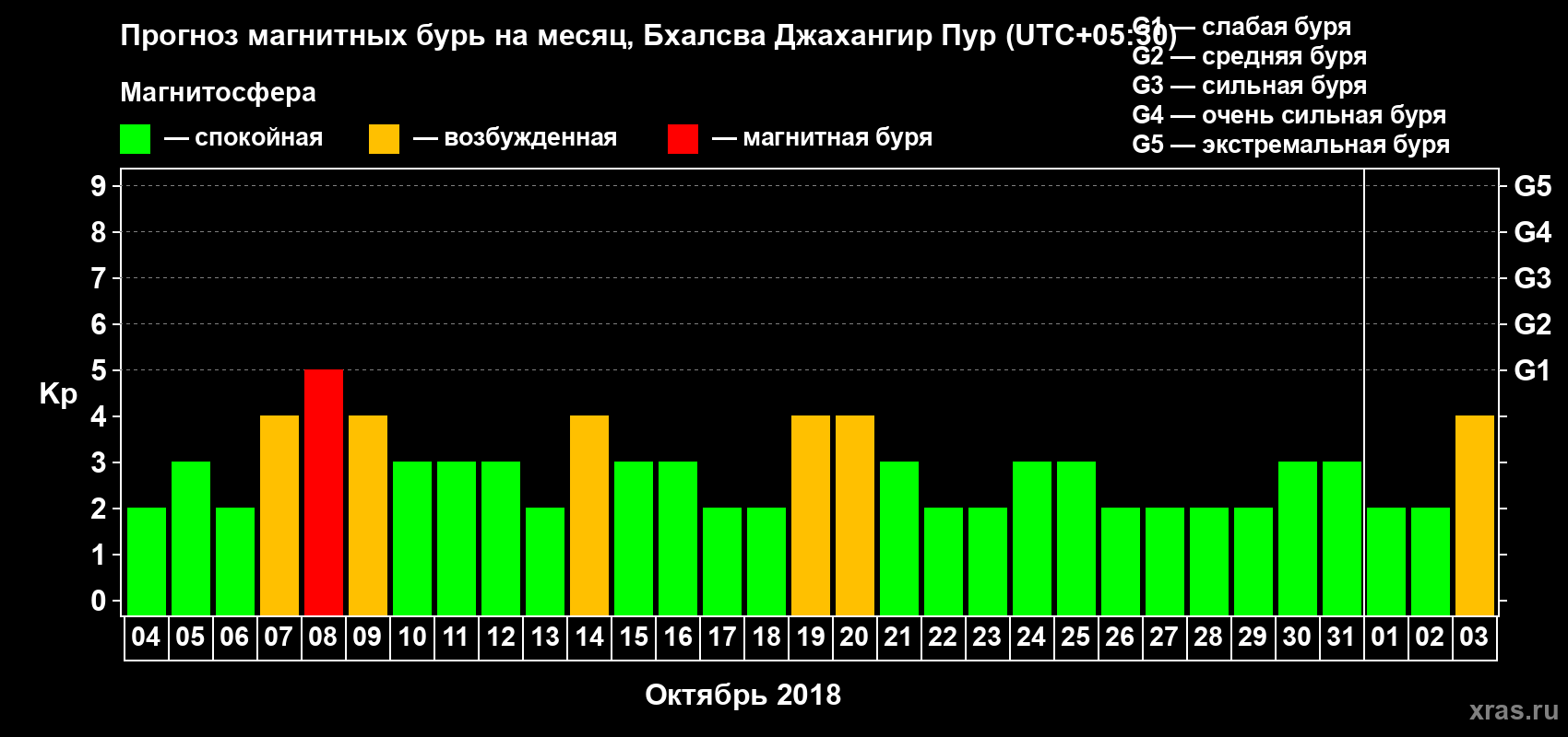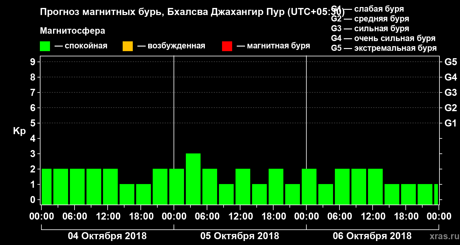 Прогноз магнитных бурь в Бхалсва Джахангир Пуре — 4 октября 2018 года