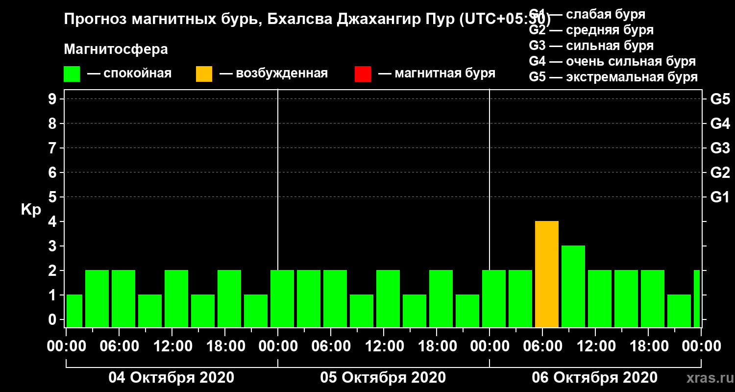 Прогноз магнитных бурь в Бхалсва Джахангир Пуре — 4 октября 2020 года
