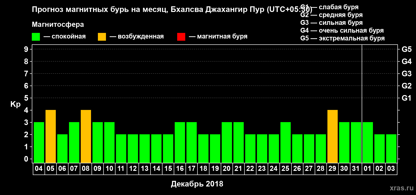 Прогноз магнитных бурь в Бхалсва Джахангир Пуре — 4 декабря 2018 года