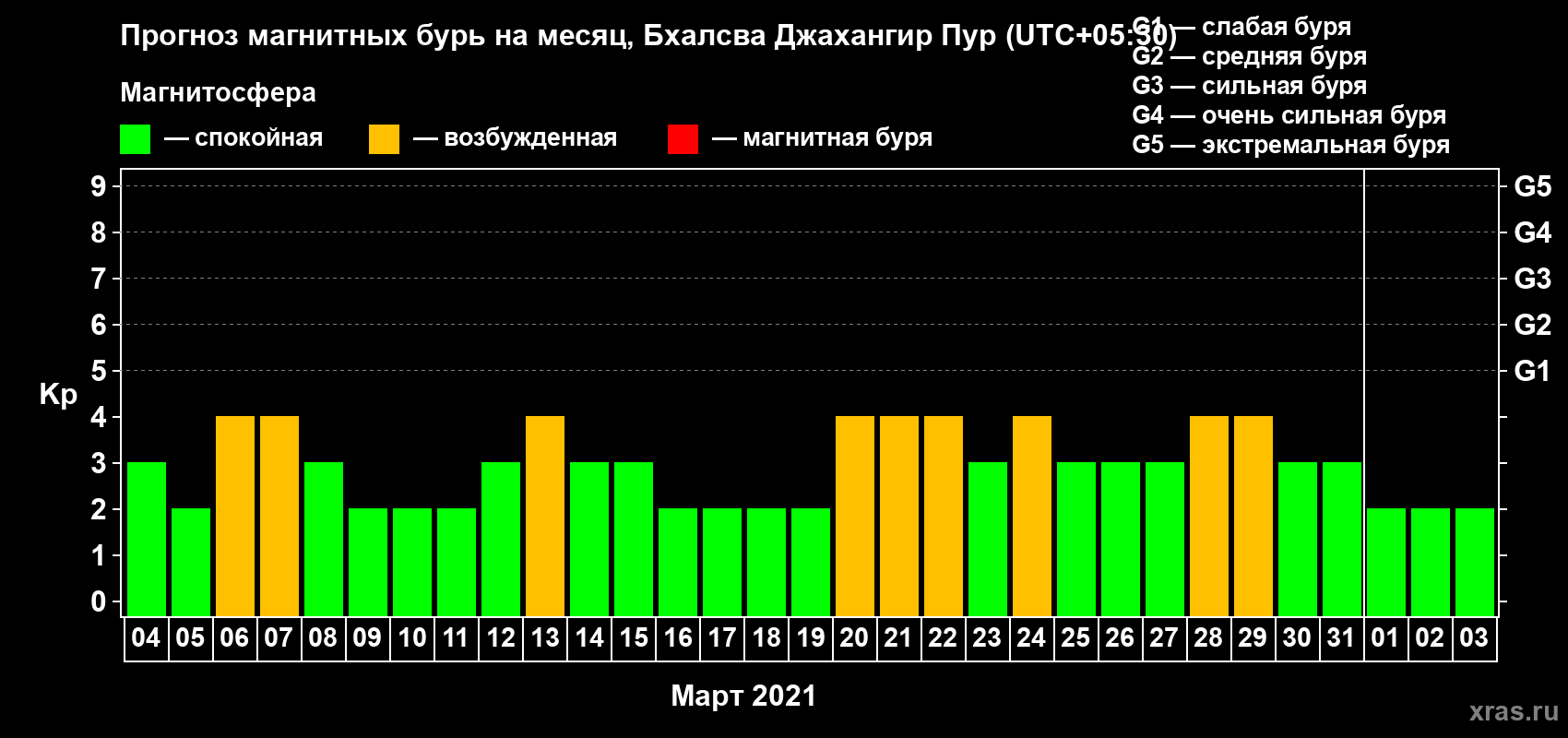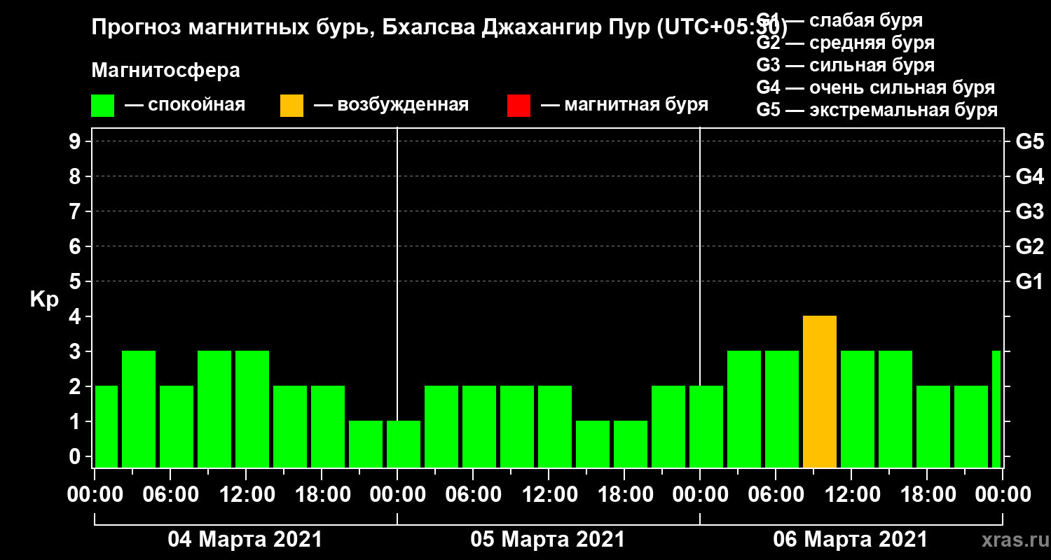 Прогноз магнитных бурь в Бхалсва Джахангир Пуре — 4 марта 2021 года