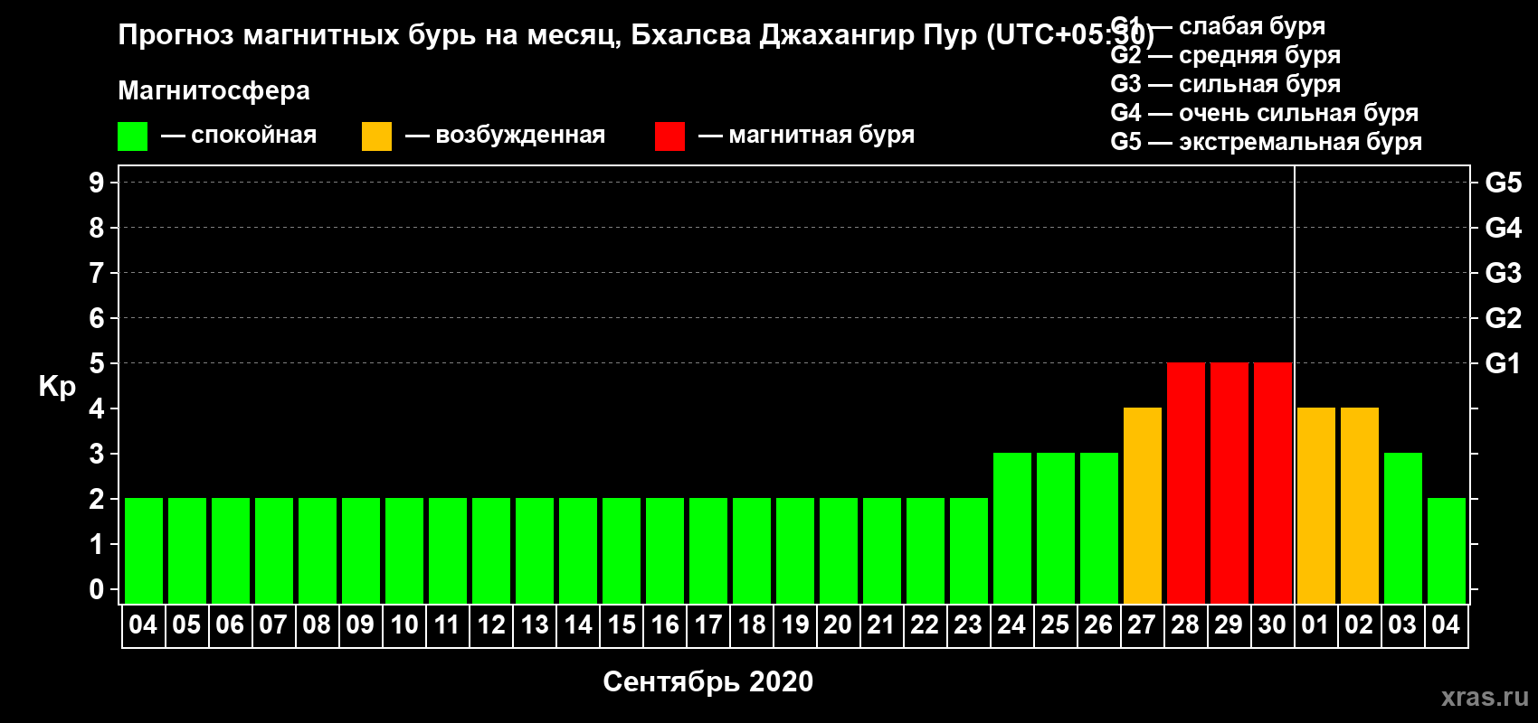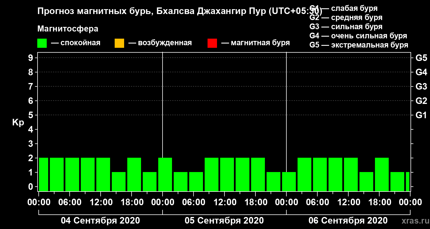 Прогноз магнитных бурь в Бхалсва Джахангир Пуре — 4 сентября 2020 года