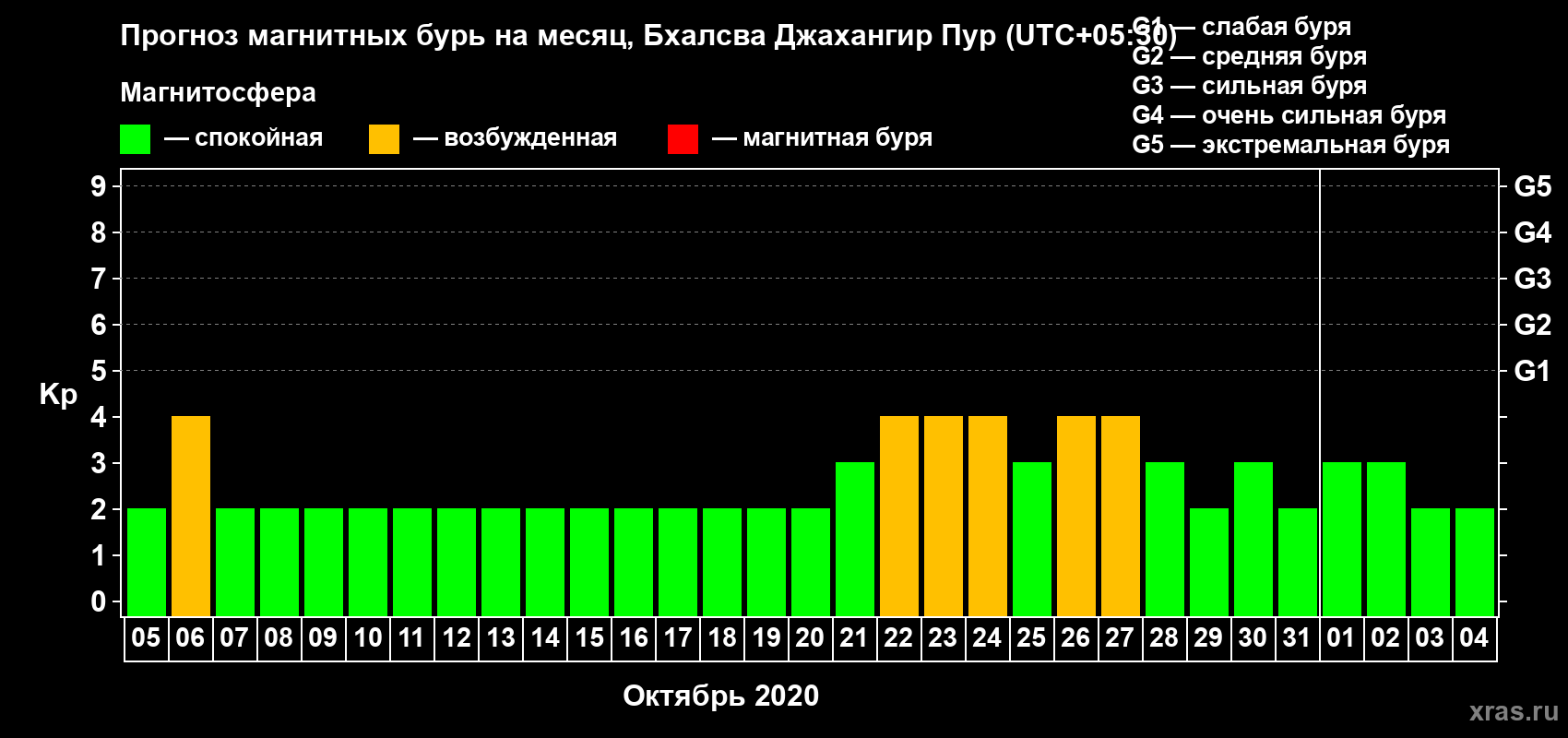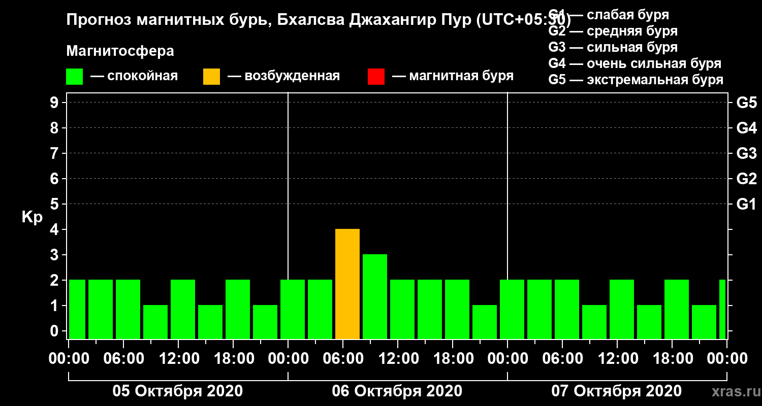 Прогноз магнитных бурь в Бхалсва Джахангир Пуре — 5 октября 2020 года