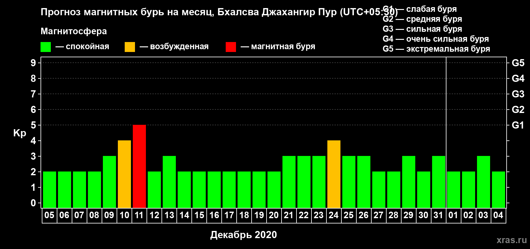 Прогноз магнитных бурь в Бхалсва Джахангир Пуре — 5 декабря 2020 года