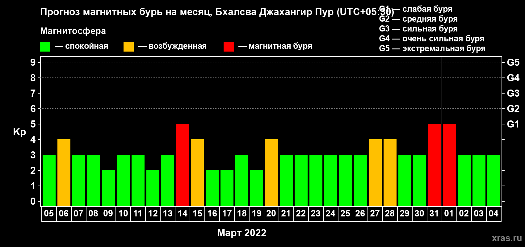 Прогноз магнитных бурь в Бхалсва Джахангир Пуре — 5 марта 2022 года