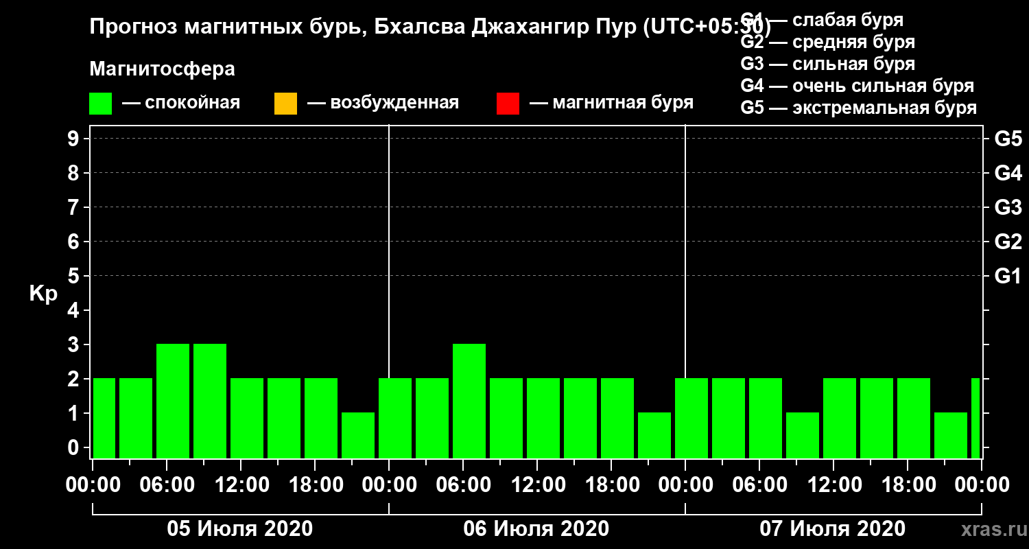 Прогноз магнитных бурь в Бхалсва Джахангир Пуре на 5 июля 2020 года